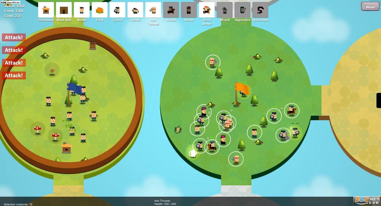 清新可爱风格的2D即时战略游戏,游戏特色的一点就是所有大陆都是圆形的被一个个连接起来,你需要守卫自己的帝国——圆形大陆,守卫需要建造士兵,开发能力等等。