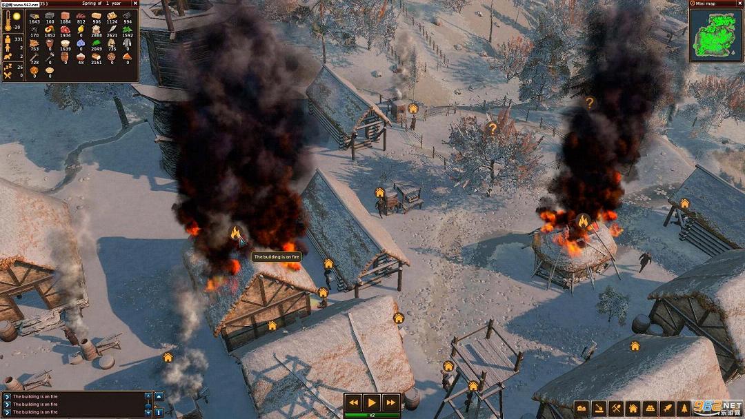 在寒冬你必须尽量储备所有类型的食物(肉类,鱼,面包,蔬菜和水果)保持你的村民的健康。