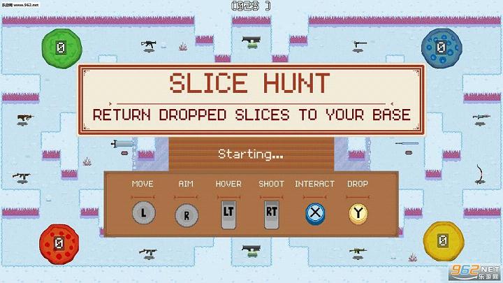 《战斗停滞(Battlesloths)》是一款像素风的联机撕逼游戏,游戏操作很简单粗暴,控制角色行动,然后使用武器攻击其他三名对手收集披萨,收集完所有披萨就获得胜利,游戏中还拥有丰富的武器系统,玩家可以使用各种武器来消灭对手。游戏节奏偏快,稍不注意就死啦,非常的欢乐,适合各位玩家与小伙伴一起愉快玩耍。