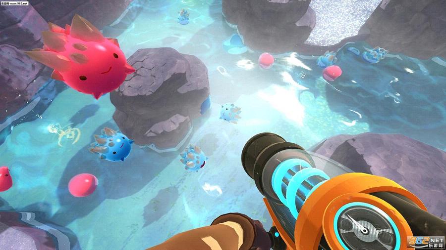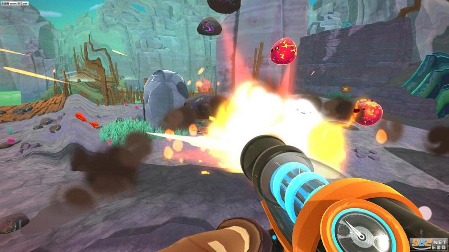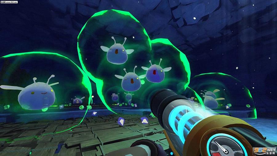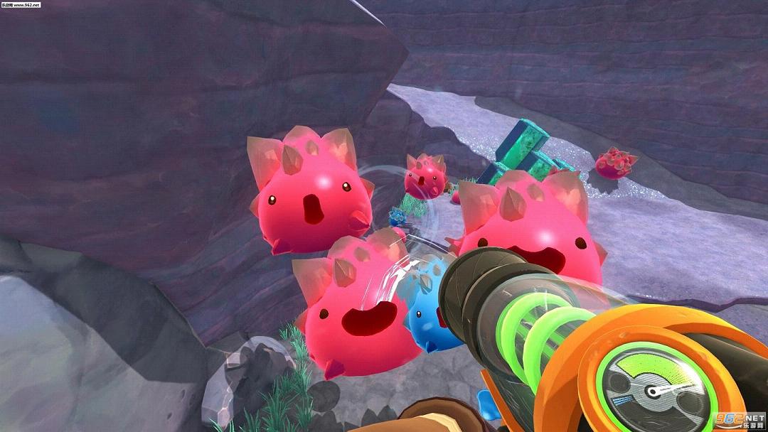 《史莱姆牧场(Slime Rancher)》是由Monomi Park制作发行的一款第一人称射击游戏,游戏讲述的是一个牧场主以卖史莱姆的屎为生的故事。玩家将扮演的主角拿着可以吸走各种小型物体的黑科技道具枪,周游各地抓回各种品种的史莱姆带回牧场圈养。收集到的史莱姆生产出的便便可以卖钱,赚到的钱可以升级牧场设施,以便你把史莱姆养得更肥,生产的便便更多。