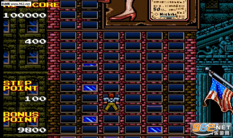 玩家需要一边攀登超高层大楼并一边避开各种障碍,直到登上楼房的顶层。游戏还原了原作原汁原味的音效和像素风格。可以利用Share功能分享游玩画面来和在线排行榜的其他玩家较量分数。