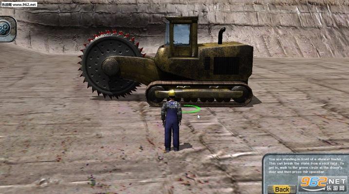然后把车开到仓库背后的炸药箱处,按ESC下车,按装钻机的顺序把炸药箱抬上车后,把车开上山,开到岩石处下车,走到后门处把钻机抬下走到岩石上按2键。