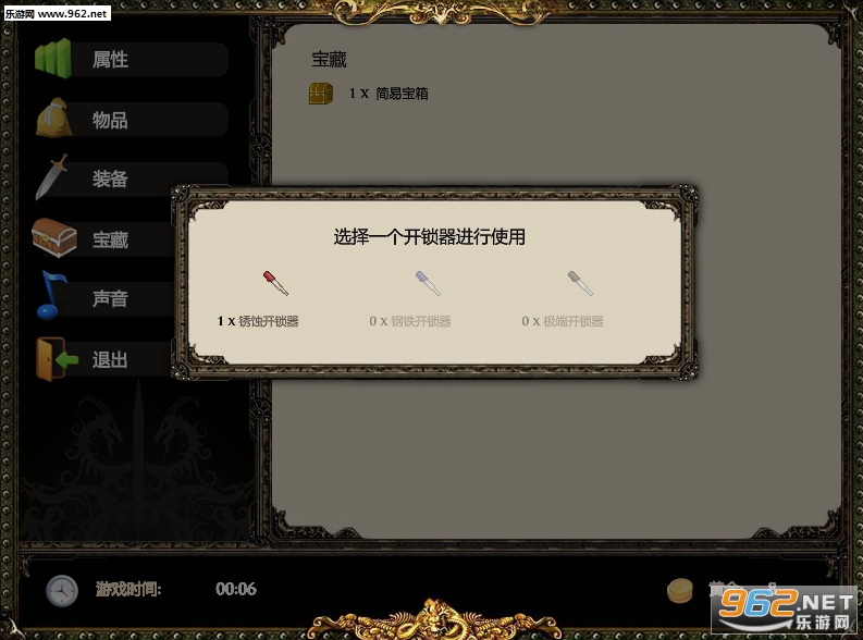 在战场上会获得的宝箱,回到大地图状态下,进入STATE选项可以进入开箱子选单,当有开箱子工具就可以进入开箱子小游戏,过关了才能开启宝箱。