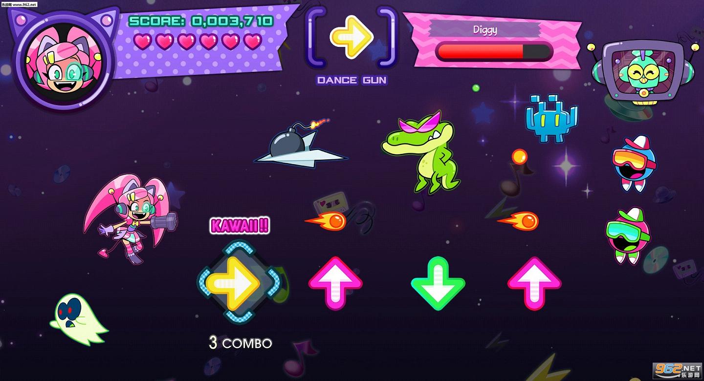 如同普通的横版射击游戏一样使用武器射击敌人。