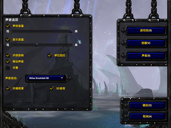 4、点击声音可以设置游戏内的声音音乐发烧玩家可以在这里选择自己的声音驱动,也可以在这里选择打开字幕;