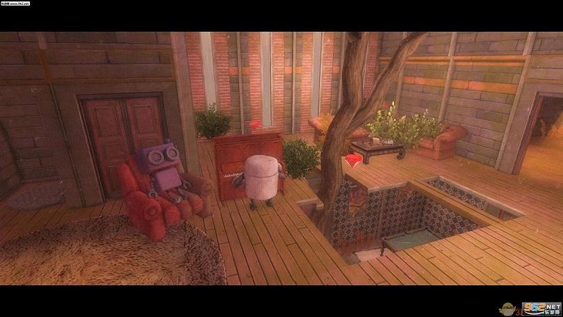 鼠标键盘控制机器人主角移动,物品基本都可以交互,甚至可以推动所有东西,物理特效做的很棒。