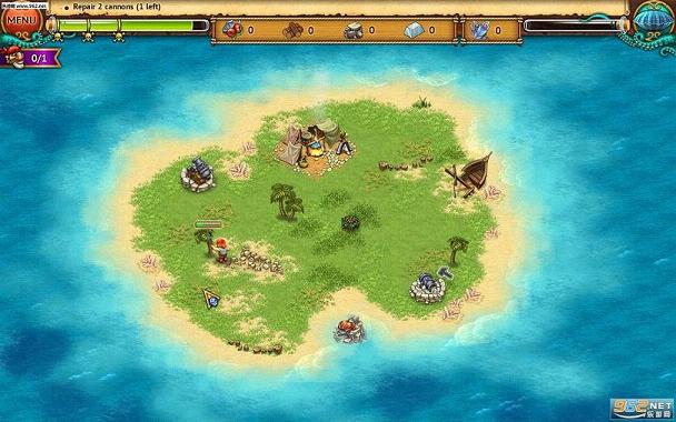 《海盗编年史》是一款传统的时间管理游戏,你要扮演一名落魄的海盗,指挥工人们采集小岛上的资源,建立防御设施,阻止海盗船队的入侵,更重要的是拯救被绑架的船长Jane。