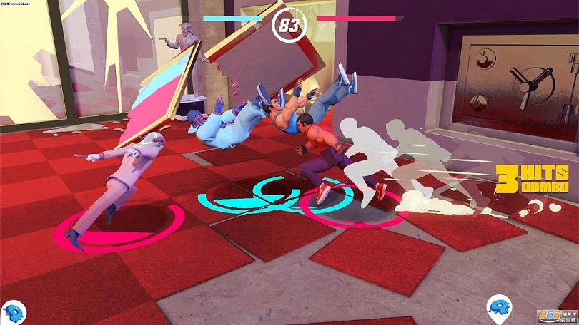 3D的视角很新颖,画面是美式卡通风格,被攻击到硬直以后还会倒地不起或者贴在墙上(哈哈)
