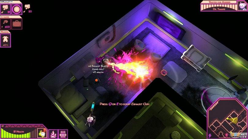 和很多的Rogue-like类游戏一样,本作没有过多的剧情介绍——不对,完全没有。在十几秒钟的过场后,主角就直接从一架非常简单粗暴的绿色小着陆飞艇里出现了,随即遭遇敌人,一言不合就立刻见面开干了。敌人都是异形的人形生物,笔者一开始还以为是兔子,不过仔细一看发现长了三个耳朵(或者是触手)?嗯,好吧,补了一下设定后才知道他们都是太空变种,而主角看起来是个正常的地球人。我在哪?我是谁?我要干嘛?这些完全不重要,在第一个区域里查看游戏的基本操作之后,杀戮这个主题就将主宰游戏的一切。