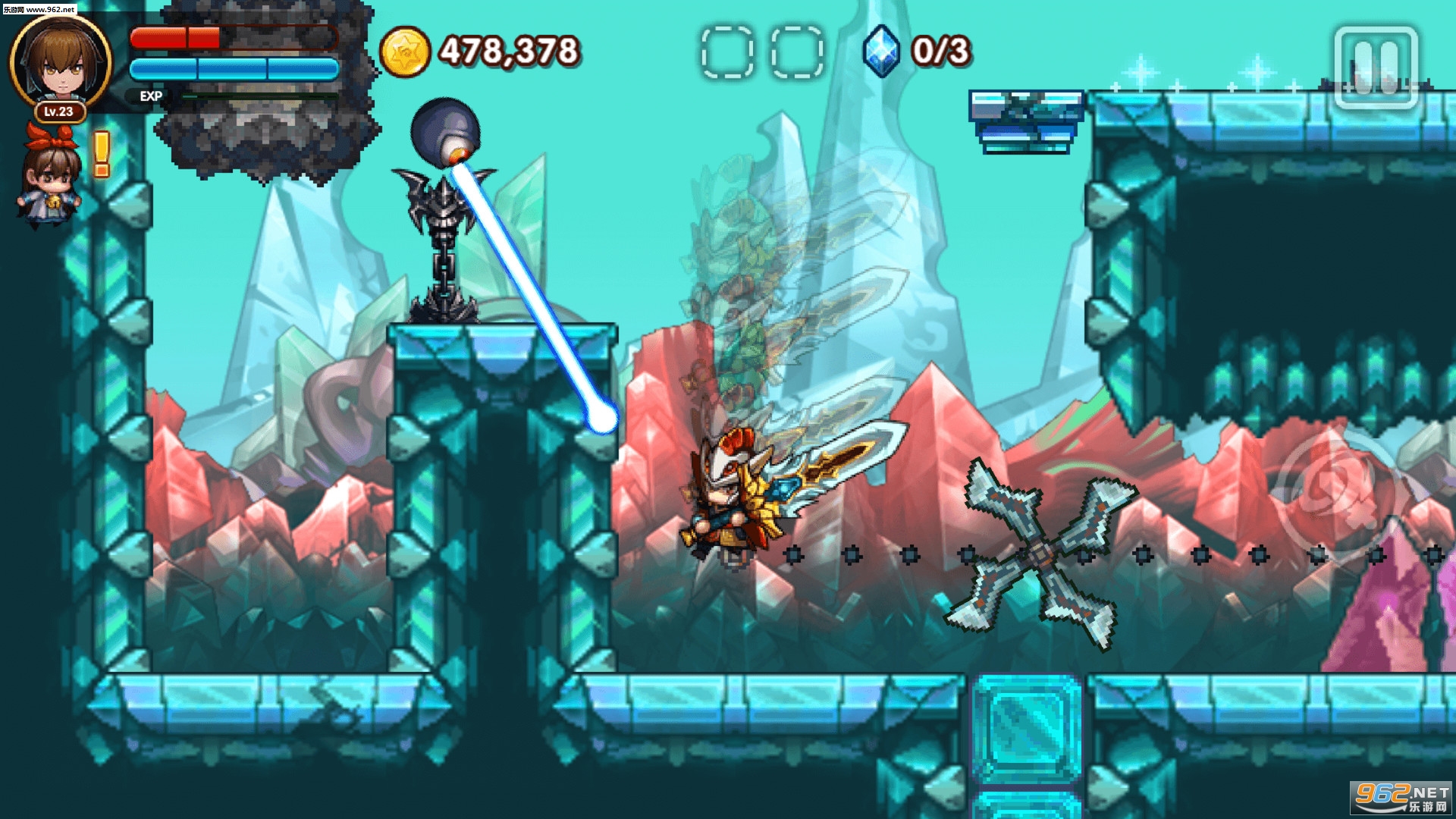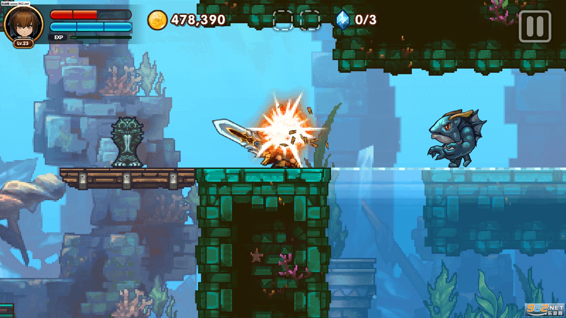 在每一个关卡中都有一个宝箱和三个宝石需要玩家收集,玩家收集完之后在关卡选择界面才可以看到这个关卡已经被玩家完美通关了,当然玩家也可以选择什么都不收集,直接消灭怪物通过关卡。值得一提的是游戏中还有许多的隐藏地点等待玩家探索,其中自然少不了一些宝藏,但是要找出他们就要靠玩家的技术了。