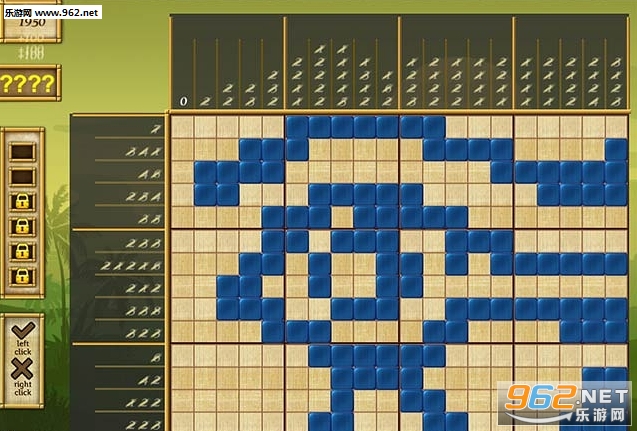 这游戏乍一看有点懵,尤其是还要啃生肉,我玩了几轮终于搞明白规则了。首先,分为行和列,每行和每列上的数字,代表了你在这行或这列可以填入多少个格子;如果有两个数字或者多个数字的话则是,在那一行或者那一列分开填满相应数量格子,在结束时如果满足所有数字的要求就是完美的。比如:你就要考虑如何让这一行有1个的同时还要那一列有3个呢?当然前面几关随便瞎填也是可以经常过关的。个人感觉这是Bigfish最考验智商的游戏了,喜欢的玩家赶紧试试吧!