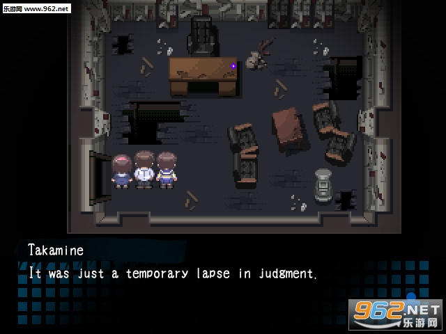 与传统的AVG游戏一样,玩家需要通过对话选择不同选项来推动游戏发展,这点小编就不加赘述了。同时《尸体派对》留给玩家自主行动的空间更大。玩家需要在地图中个角落仔细搜寻可疑使得剧情发展的道具,人物或者其他要素(话说小编在一个紫色鬼火那里卡了很久,汗),比如木板可以用来铺路等等。任何的马虎大意都会使玩家漏掉一些信息,使得玩家对游戏剧情的理解产生困难,甚至影响到游戏进行(序章快结束逃出保健室就需要对物品的认真寻找)。所以试着找到游戏中一切的要素吧!