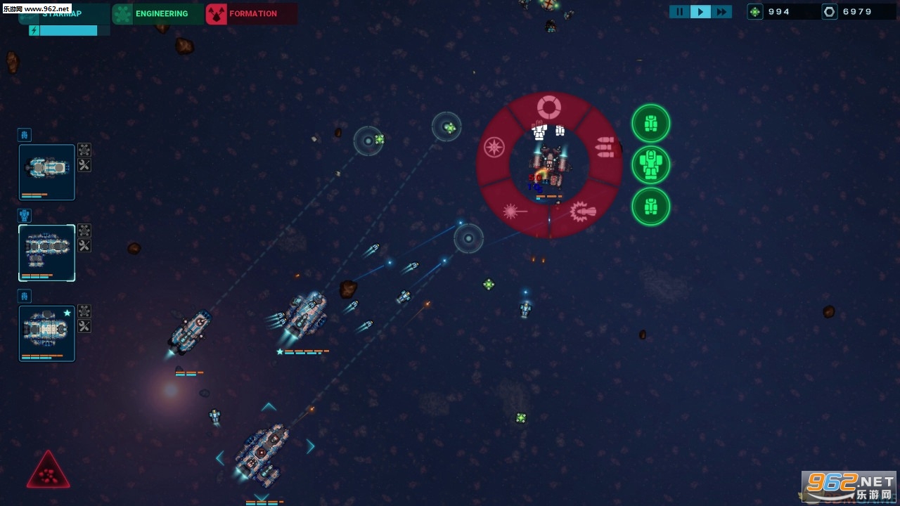 有简单普通困难三种模式,开局只有一艘飞船,你可以增加飞船数量或者改进飞船质量,随着游戏的推进,你可以打造属于自己的庞大舰队 左键选择飞船,右键控制飞船开火。。。