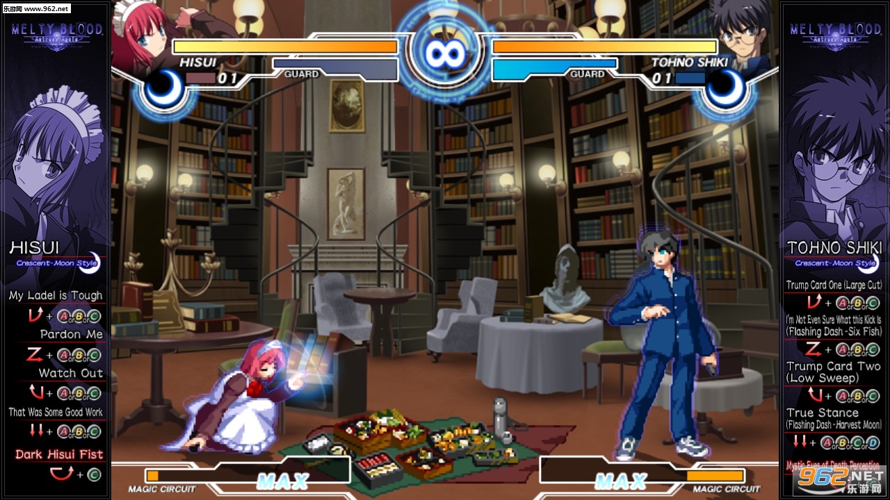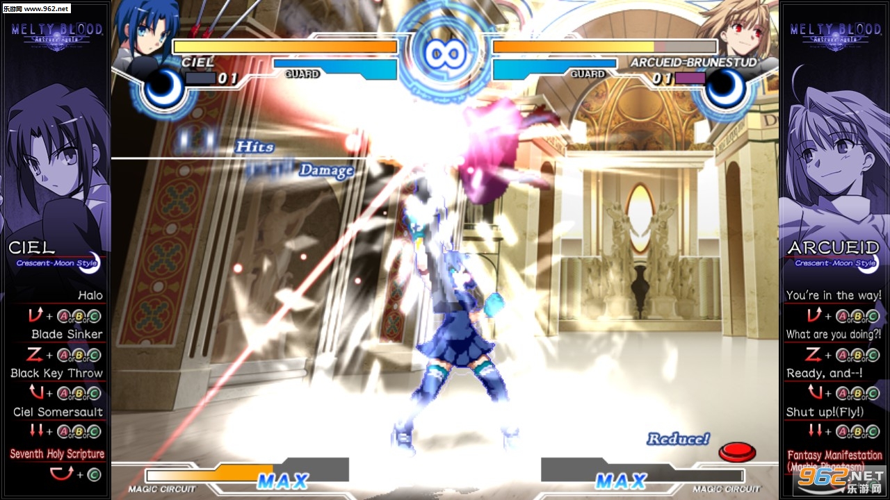 [MELTY BLOOD Actress Again Current Code]的壮大物语,得以在[ARCADE]里的晓。1年前的噩梦,再次来临。各个物语的人物,究竟采取何种行动? 此外,在[VERSUS」里,玩家可利用各种战斗配合,立即战斗。想先练好功夫的,可先前往[TRAINING]练上七七四十九种连接击后下山挑战他人。