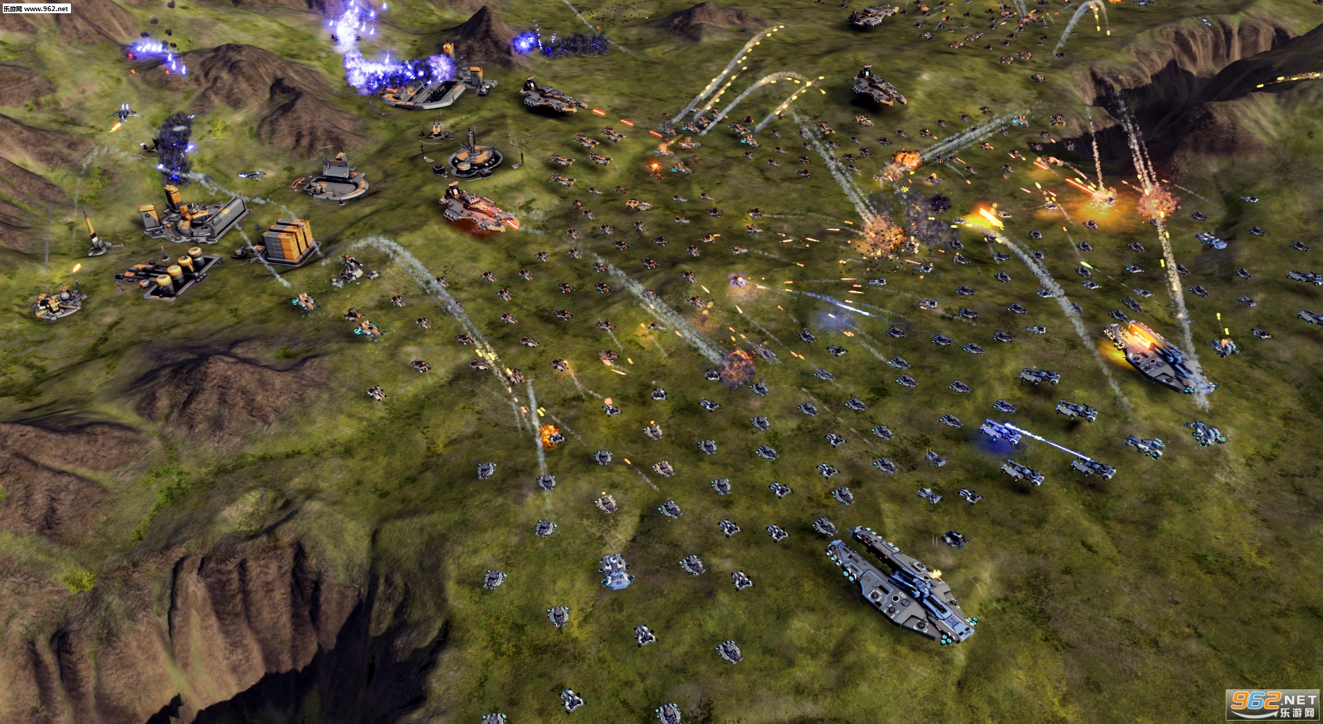 地图硕大这也是我觉得唯一的优点,但是也就只是大。地图细节简直可以说是荒芜除了地面就是稀疏的小树每个地图基本都是这样。地图有高地但是在这个游戏没有任何意义 在这个地图上你能做的就只是建造,探路,A过去