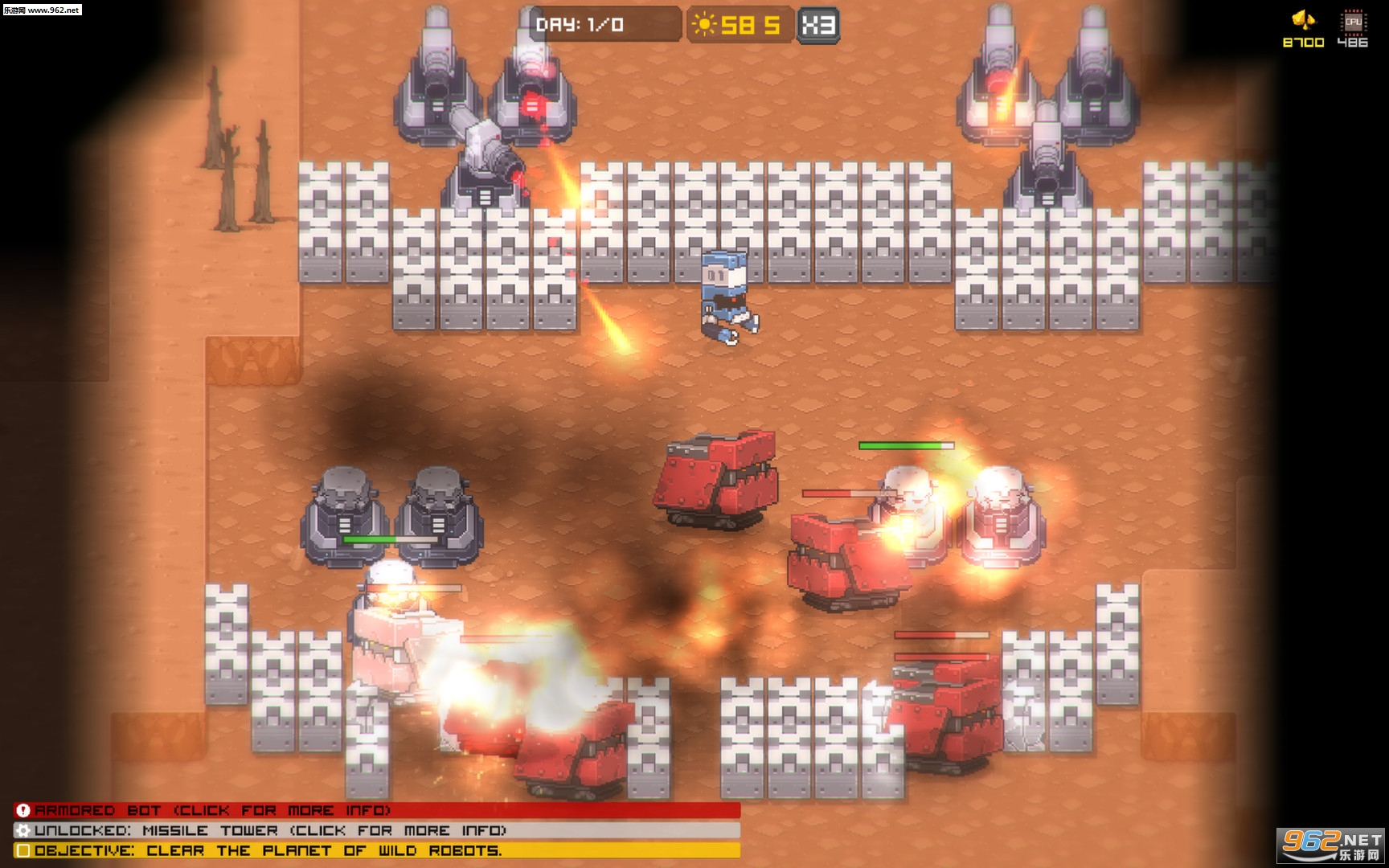 1、你需要依靠各种机器人帮助你防守基地。