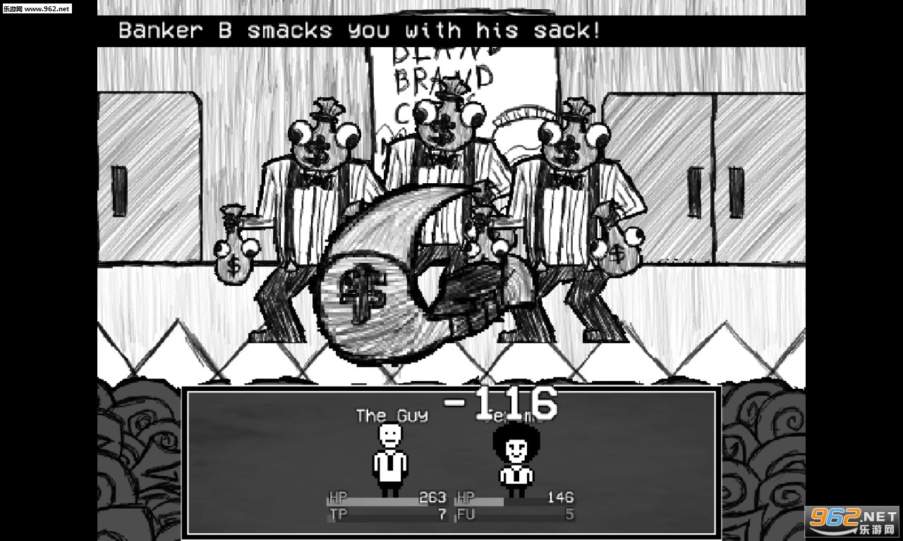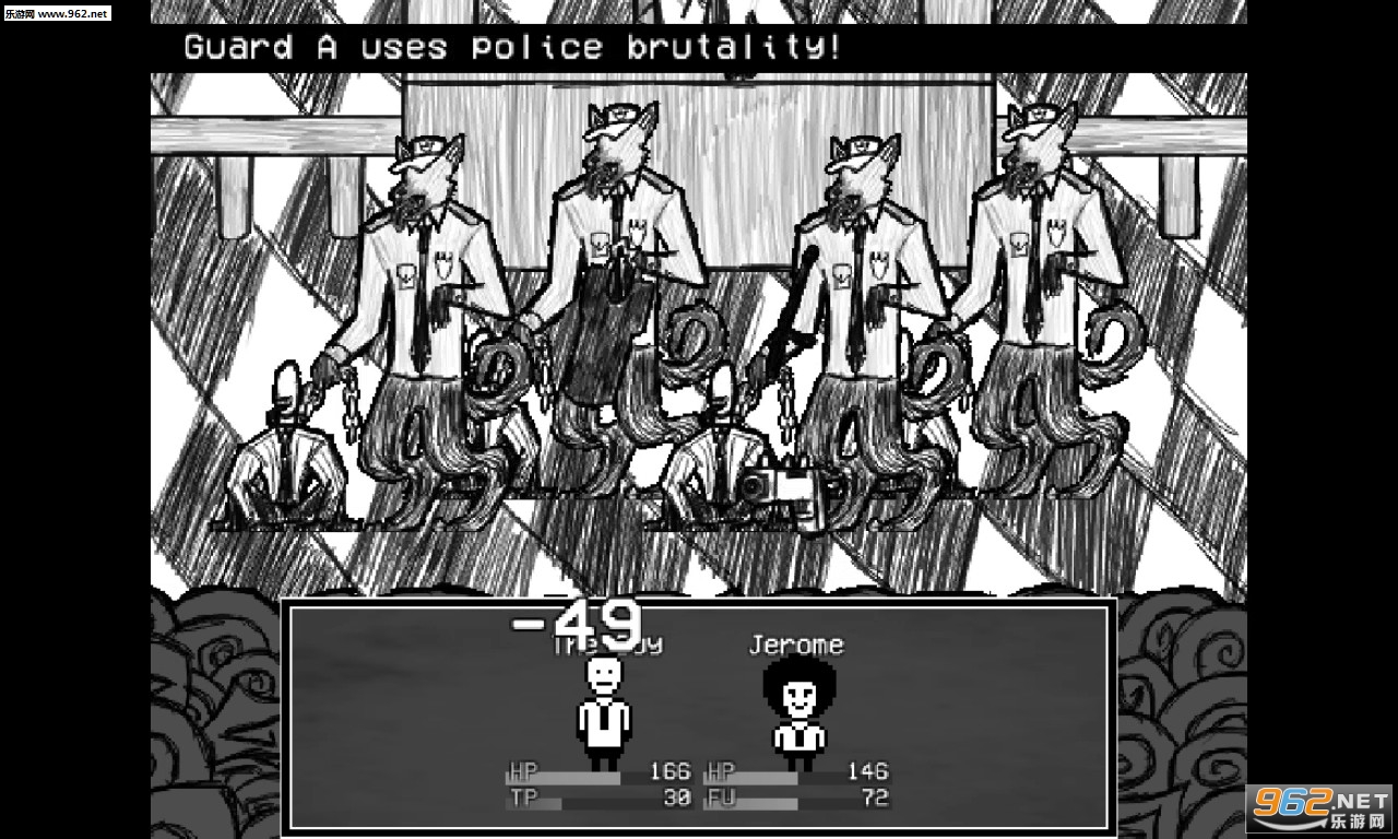 游戏的画风很新颖,在RM类游戏画风泛滥的今天,可谓万绿丛中一点红,怪物的设定也很新奇,你可以遇到领带、咖啡杯之类的怪物,也有在资本主义蚕食下的扭曲员工,甚至是一些猎奇生物。流程不长,成就也比较简单,另外游戏中一些高端黑、隐藏要素也十分有趣。