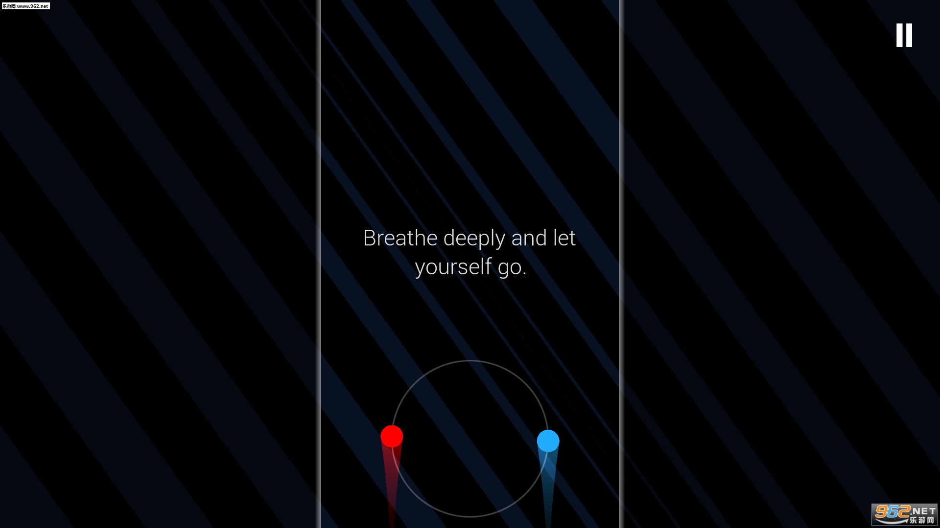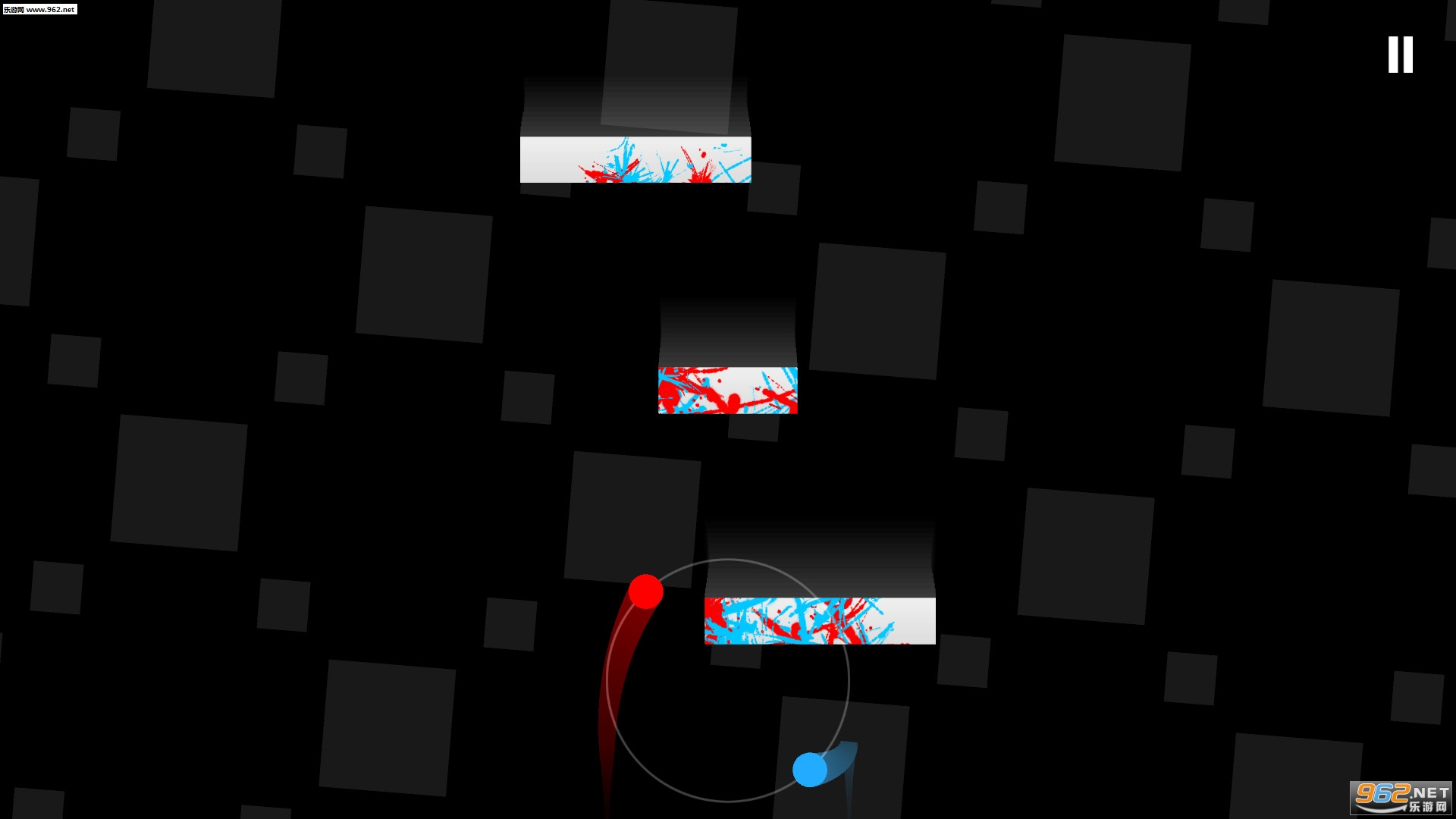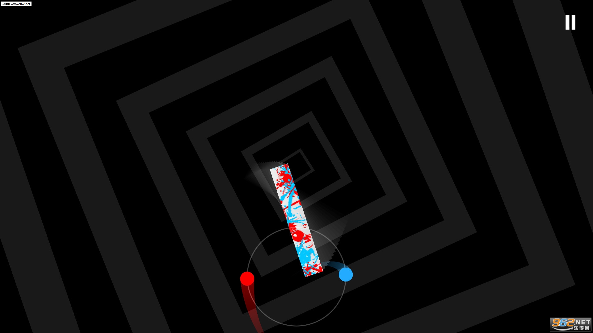 《双球(Duet)》的玩法简单直观,与极简的环境结合在一起,就构建成了复杂的控制体系。游戏开始后,玩家的任务就是让两个容器存货。也就是屏幕中的蓝色和红色圆球,两个圆球的运动有同步性,当玩家轻触屏幕右侧时,两个圆球都会向右,也就是顺时针方向运动。当玩家轻触屏幕左侧时,两个圆球会开始向左,也就是逆时针方向运动。在两者同步而依赖的运动时,相互构成的圆形也会向上不断的推进。
