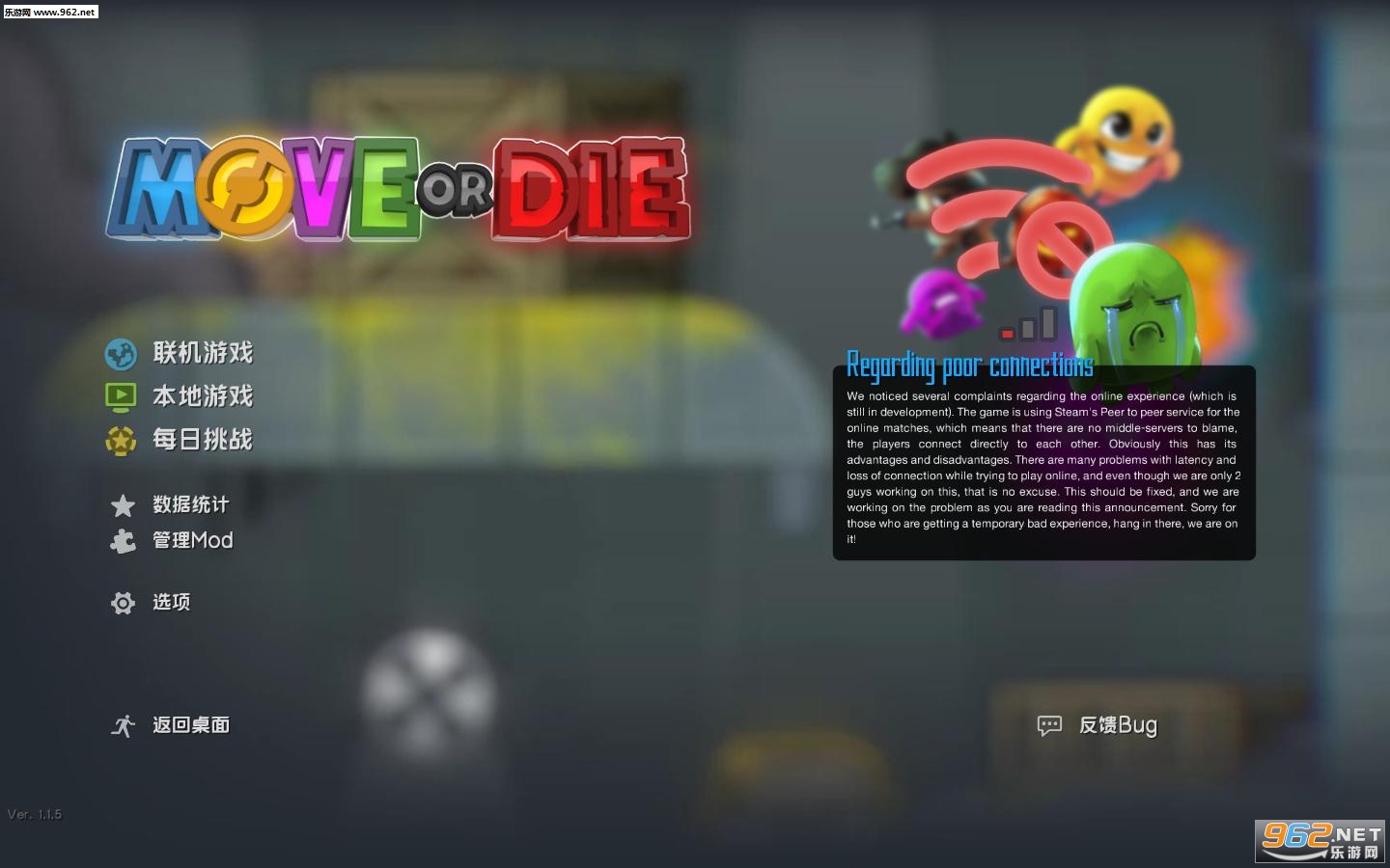 游戏玩法:四人对抗,最基本的设定----游戏如其名MOVE OR DIE,每人都有一个血条,静止不动就会掉血,左右奔跑才能永葆青春..(注意,原地跳不算移动,血条照掉无误)