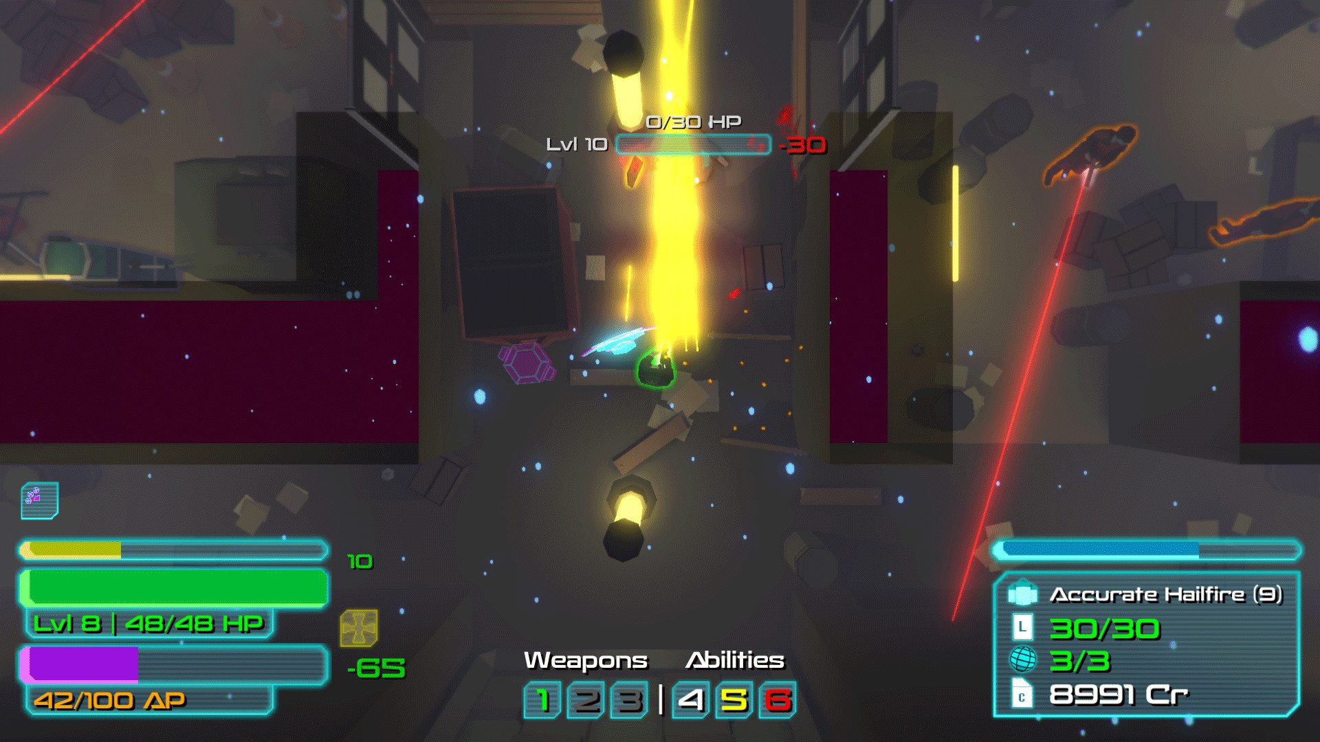 《碎片》是一款融合了《无主之地》系列的RPG元素和《迈阿密热线》系列音乐风格的快节奏动作射击游戏。故事发生在一个赛博朋克背景的世界,里面有克隆,叛乱,神秘的大都市Entropolis,当然还有黑客。你可以一边跑一边射击,使用各种强大的武器消灭敌人,或者被敌人干掉,通过一次又一次死亡积累经验,规划自己携带的武器装备,以更快的速度完成挑战。