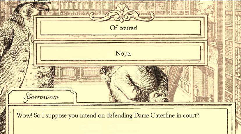 《鸟笼事务所(Aviary Attorney)》是一款复古的解谜游戏,游戏比较像是像是《逆转裁判》与《帅鸽男友》的结合体,背景设定在1848年的巴黎。玩家将扮演一名叫做杰杰(Jayjay)的鹰绅士,作为一名辩护律师收集有利证据在法庭上为代理人打赢官司。你的客户是出身中产阶级富裕家庭的猫咪凯瑟琳女士,她被怀疑为一宗宴会谋杀案的嫌疑对象,需要你帮助她洗清冤屈。玩家需要通过与不同角色进行对话来搜集证据,根据玩家的选择游戏将提供多个故事线和不同的结局。游戏画面相当复古,并模仿19世纪知名漫画家 J. J. Grandville 式的手绘漫画风,与游戏中身着古典宫廷服饰的动物们相得益彰。而在玩法上则主要通过翻阅角色之间的对话来寻求证据,游戏提供了多个故事线与结局供玩家选择。感兴趣的玩家可以试试。