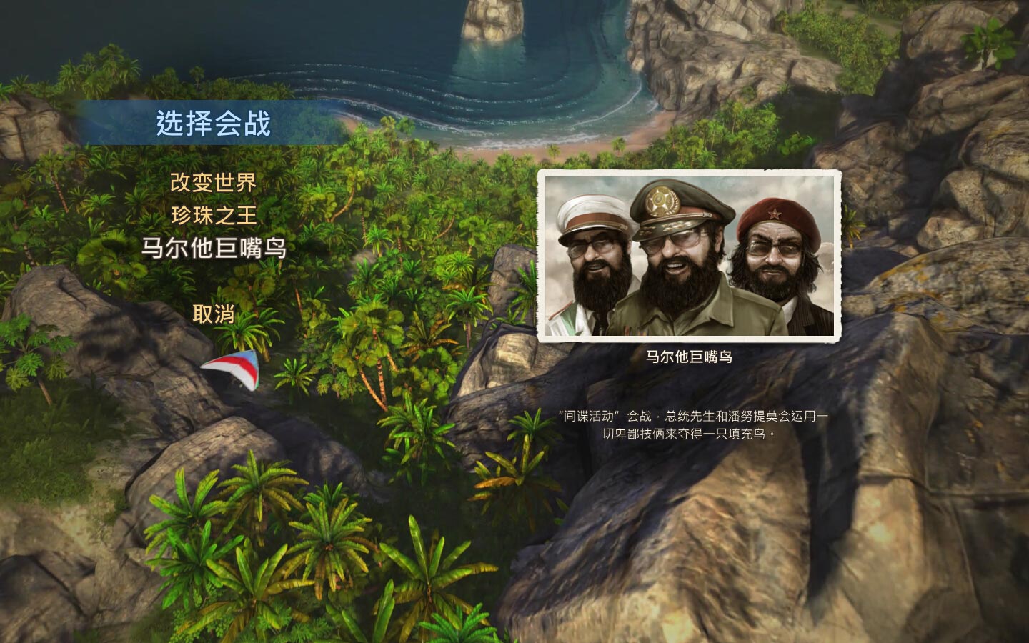 我们一起来度假吧!激情而且欢快的背景音乐一直是《海岛大亨》系列呈现的主题,这种音乐的风格也是我非常喜欢的,弗拉门戈吉他弹法的乌克丽丽和手鼓配合的方式。一听就很有来到美丽海岛的感觉,而这回我们不是去度假,而是前往海岛成为这个地方的总督。