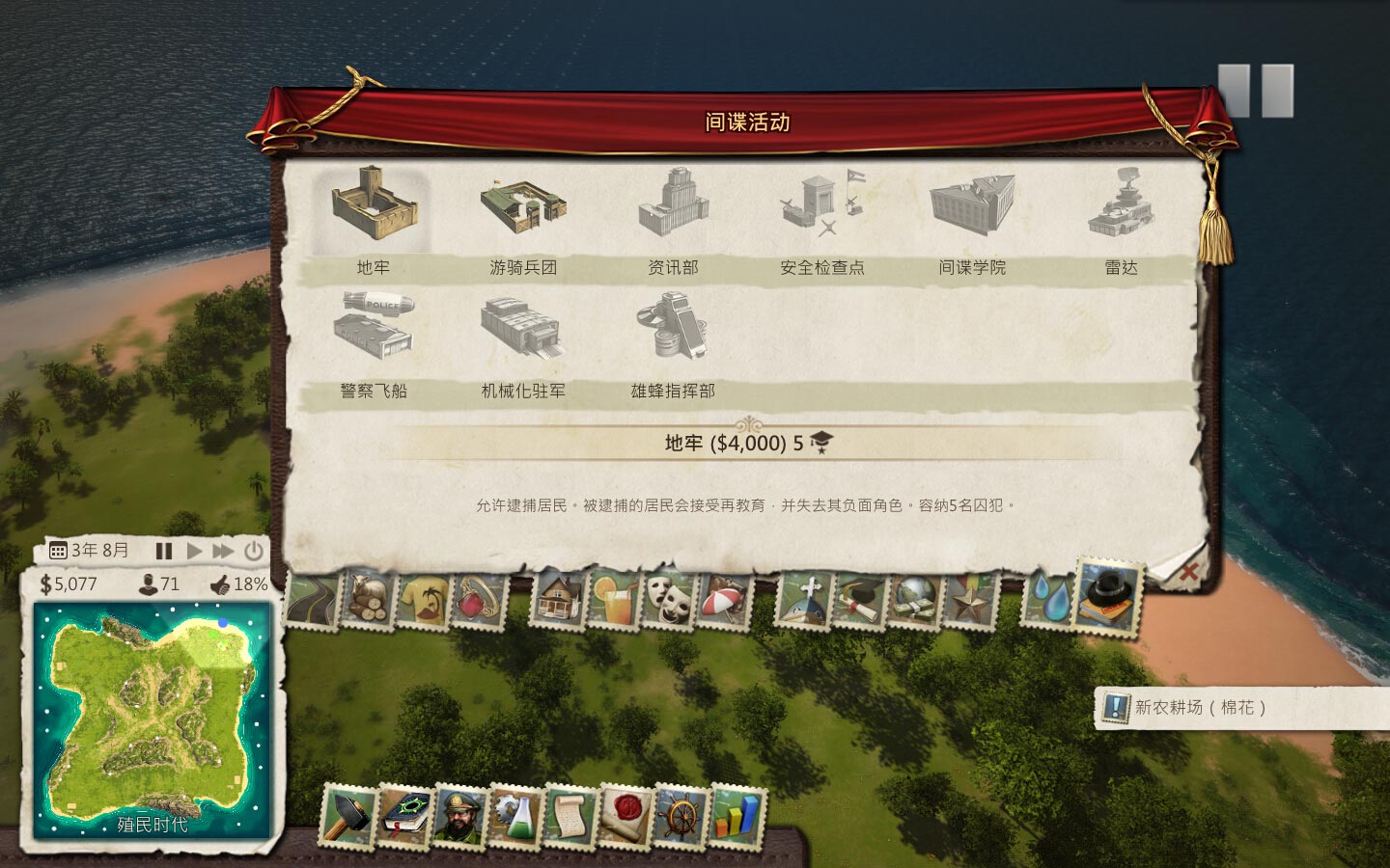 年代:该作的时代背景为19世纪到21世纪,在不同时代玩家会遇到不同的挑战和机遇。玩家在殖民初期开始统治小岛,引领其走向现代化的未来。