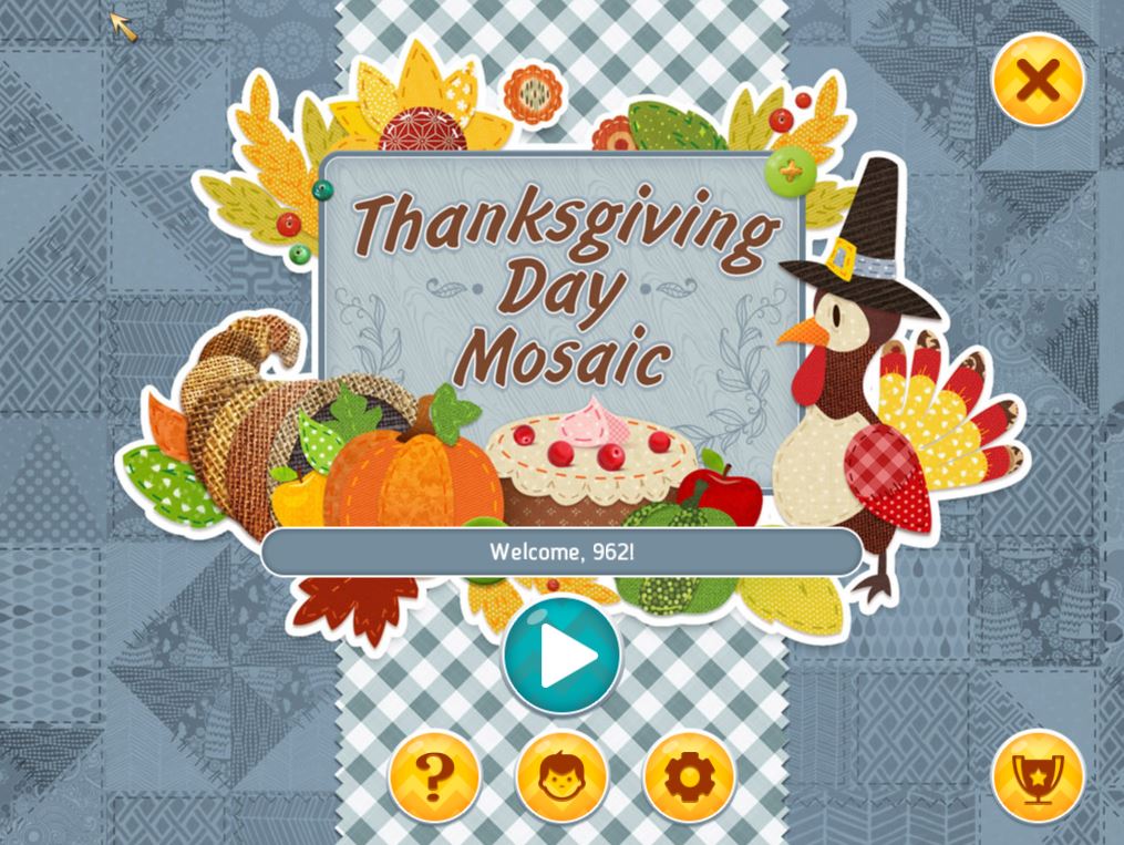 《感恩节嵌图(Thanksgiving Day Mosaic)》是由iwin制作发行的一款以感恩节为题材的拼图游戏,采用的是经典的拼布玩法。玩家在本作中,不仅能体验到游戏的乐趣,还好了解一些感恩节的知识。