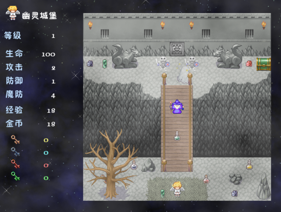 《万圣夜狂想曲:幽灵城堡》是由国内玩家“Albulewic”使用RPG制作工具与魔塔样板7630自制的一款魔塔类闯关冒险游戏,游戏的剧情几乎没有,你需要做到就是操作人物通过这28层的魔塔即可。