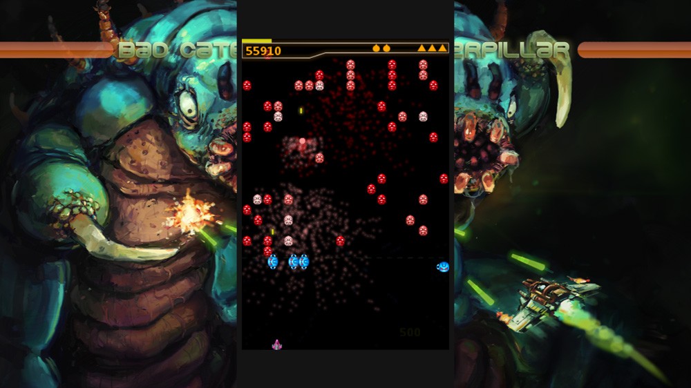《坏毛虫(Bad Caterpillar)》是一款非常简单的休闲小游戏,玩法上和儿时FC红白机上的《小蜜蜂》有点类似,你需要做的就是操作战机去消灭坏毛虫,与《小蜜蜂》不同的是本作并不需要你击败所有怪物,你只需要消灭那组在毛毛虫中间游走的坏毛虫即可通关,比较考验玩家对于射击时机的把握。