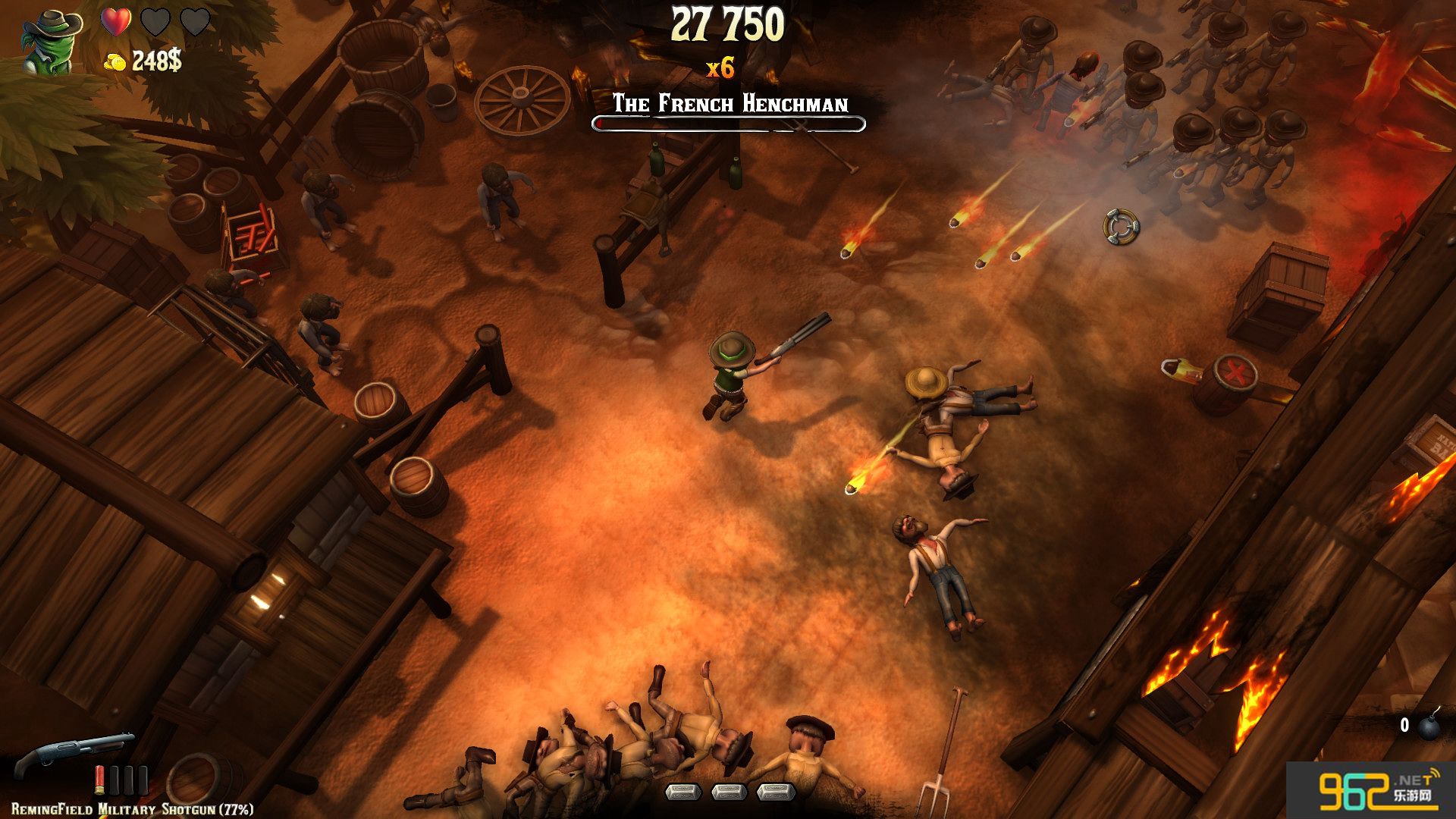 《狂野前线(Wild Frontera)》是由Tamarin Studios制作发行的一款上帝视角的射击游戏。玩家在游戏中扮演一名西部枪手,你需要消灭敌人,击败BOSS,闯过各种关卡。