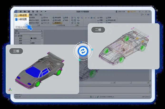支持查看多种不同的CAD文件格式;支持2D、3D视图进行切换,并且可以进行多视角图纸查看