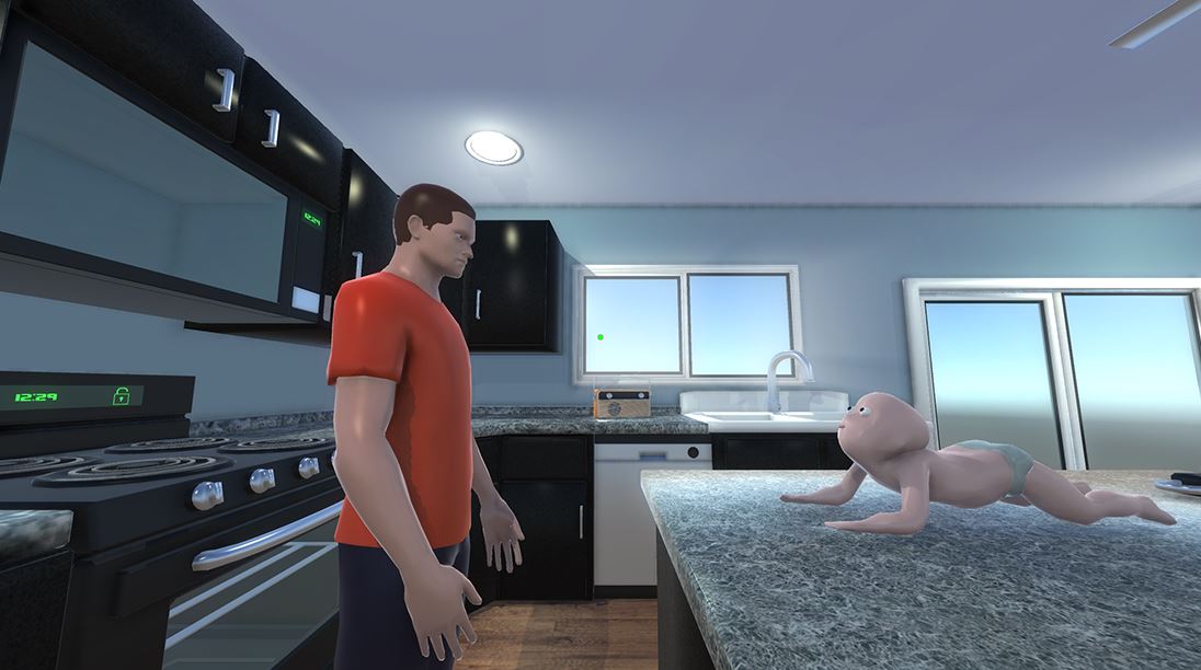 当你扮演爸爸的角色,你的人物就是防止自己的儿子因为任何情况死掉,你将会面临各种挑战,及时的整理玩具,为烟雾报警器充电,反正尽可能照顾好自己爱的儿子,游戏里也会有各种辅助道具,例如PEEK-A-BOO能够使爸爸隐身,BAT DAD可以让爸爸拥有穿墙透视的功能。如果你扮演儿子,你的目标就是想尽一切办法自杀,例如把手伸进充电板里,把自己泡在浴缸里,让各类化学产品爆炸等。