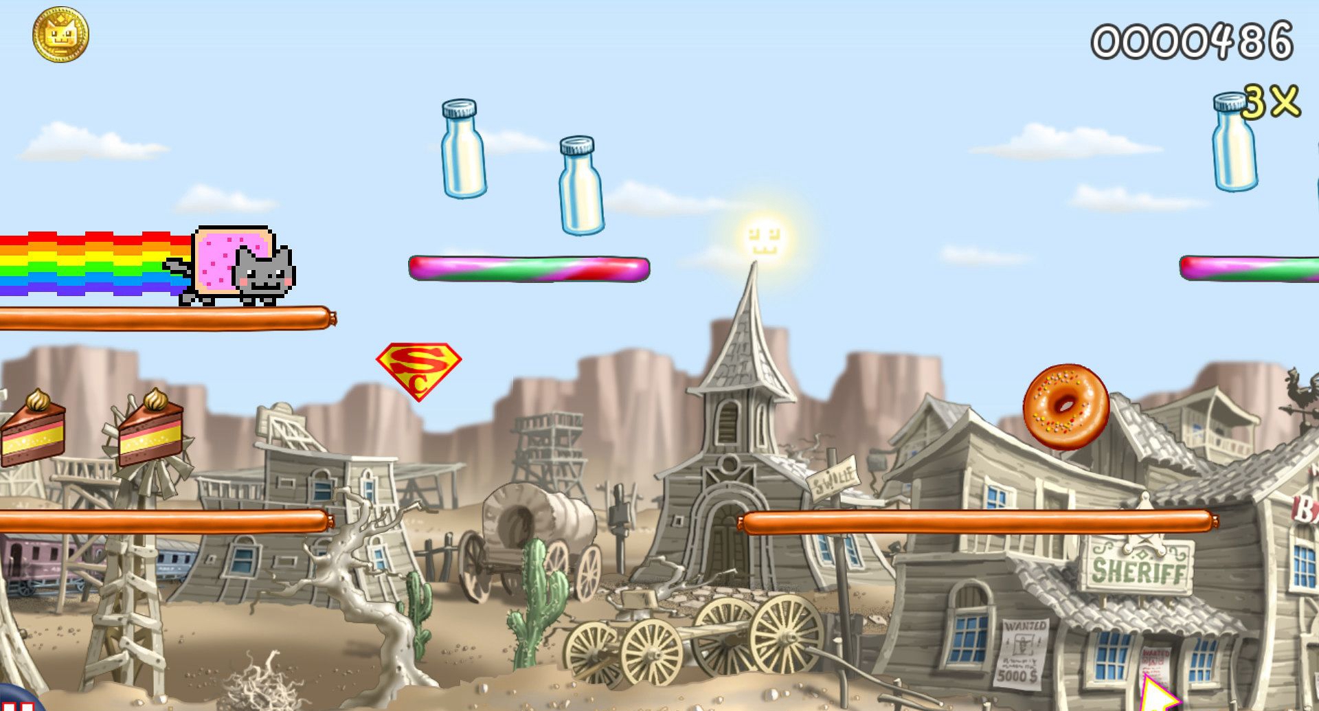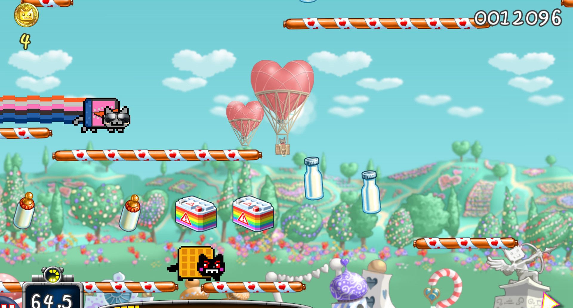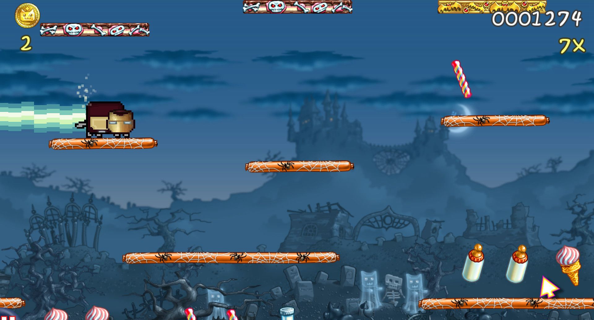 画面:游戏拥有美丽的像素画质,小猫猫身后要会出现彩虹色的痕迹。