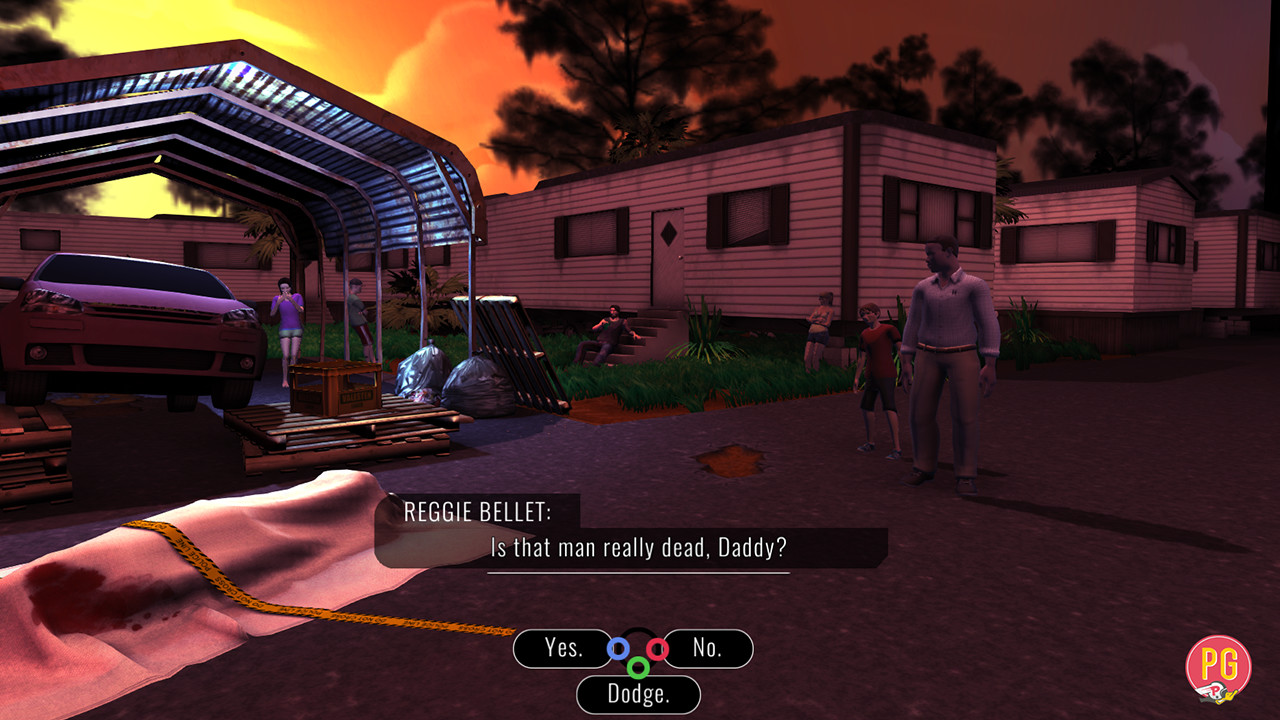 《深陷(Knee Deep)》是由Prologue Games制作发行的一款极具特色的冒险解谜游戏。游戏中你需要调查3个人物的死亡事件:厚脸皮的博主,落魄的本地记者和愤世嫉俗的私家侦探。游戏以对话的形式展开,每完成一个地方的调查,会进入下一个场景。