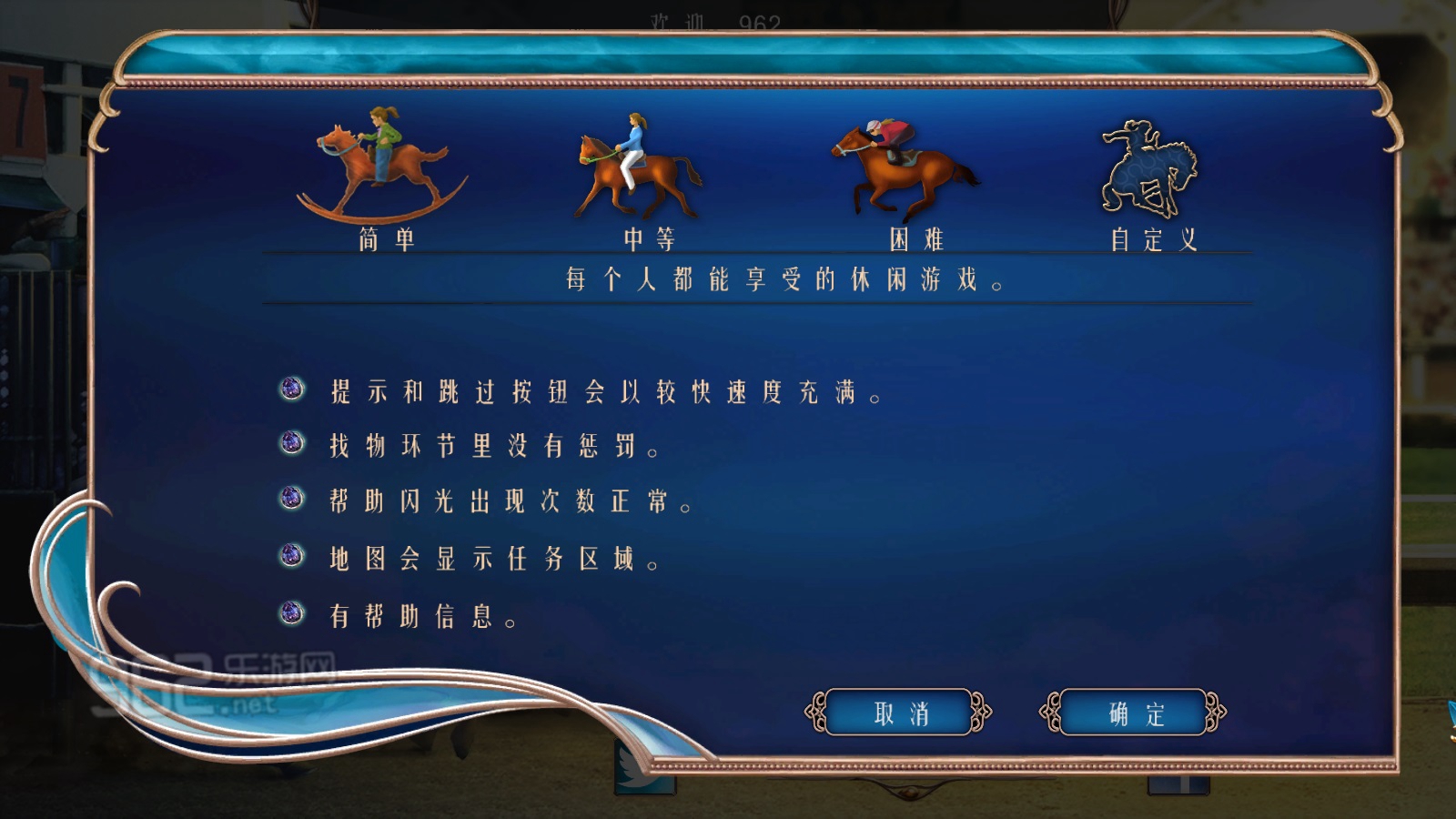 休闲模式(Casual):提示和跳过按钮冷却快,在找物场景中没有错误惩罚,可互动的区域具有闪光提示,地图上显示可前往的区域,拥有完整的教程。