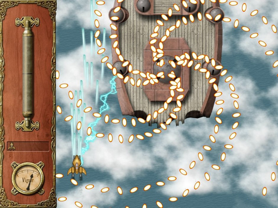 《诺登菲尔德(Nordenfelt)》简单点说就是一款类似东方弹幕游戏的打飞机游戏,你需要做的就是躲避漫天飞舞的子弹,然后操作飞机击败各种敌人。可以说是换了个画风的弹幕游戏,游戏中的场景绚烂华丽,蒸汽朋克风十足,喜欢打飞机和弹幕游戏的玩家不妨试试。