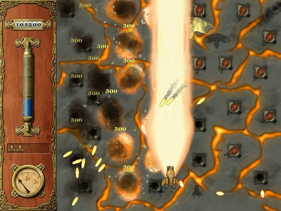 《诺登菲尔德(Nordenfelt)》是由Black Golem制作发行的一款飞行射击游戏。故事讲述机械巨兽入侵了一个蒸汽机械为主流的大陆,而你作为这个大陆的一员,需要操作飞船击败入侵者。