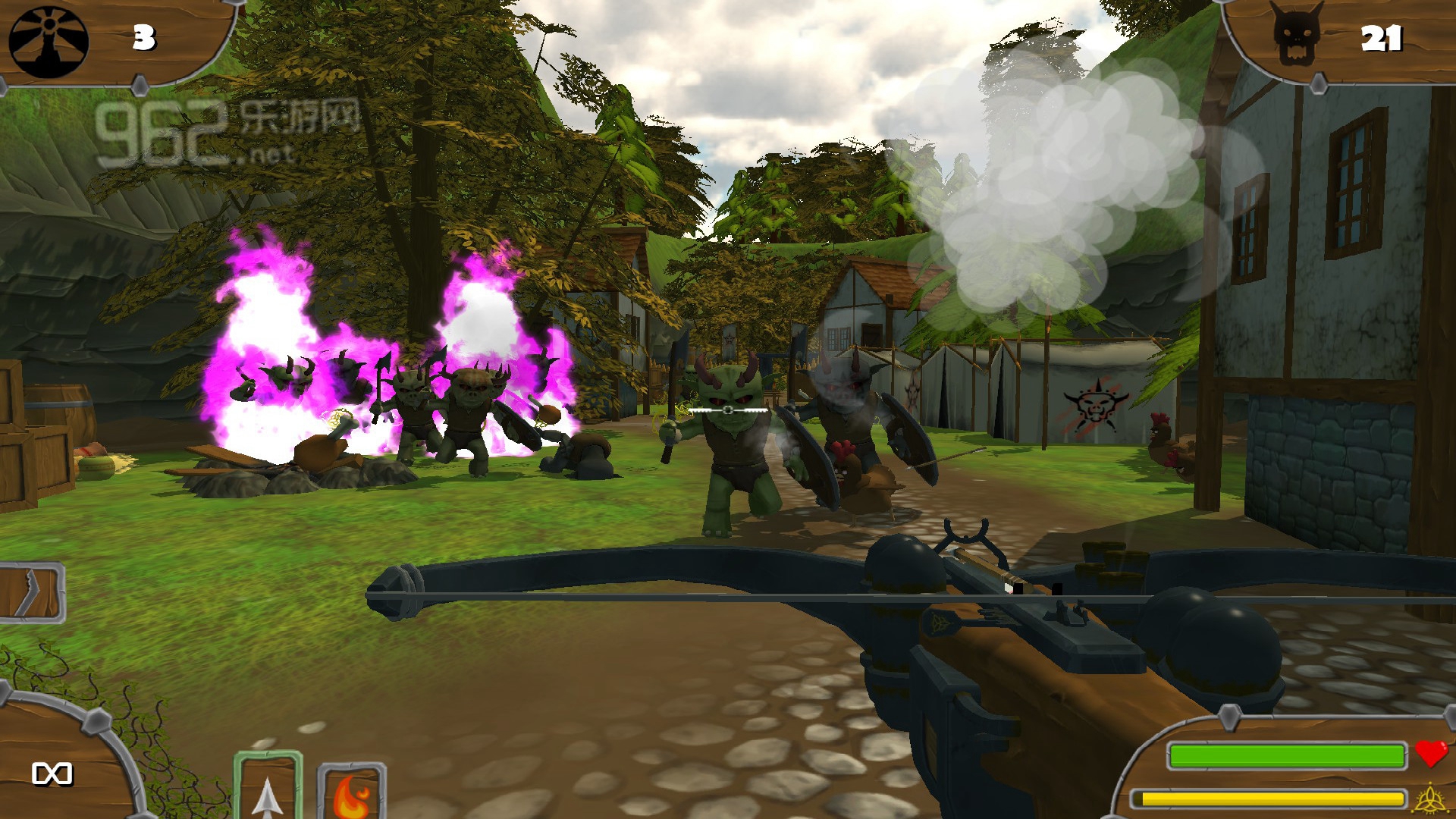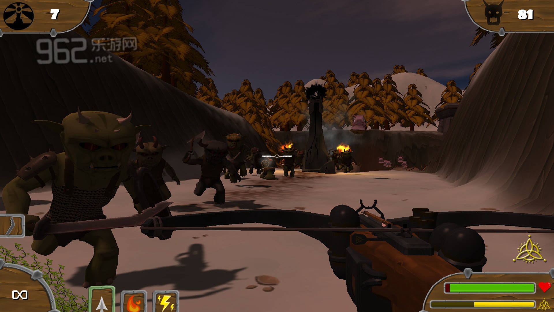 武器:弩,这是猎人的唯一武器,杀死不守规矩的兽人可以获得经验并进行升级。