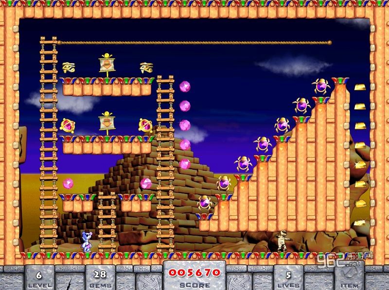 华丽的艺术画面中共包括7大主题场景,精美的背景画面还采用了动态效果,给带给你很好的视觉感受。大量的宝石,金杯,图腾可以收集,效果也相当华丽。小白熊造型早已成为游戏招牌。