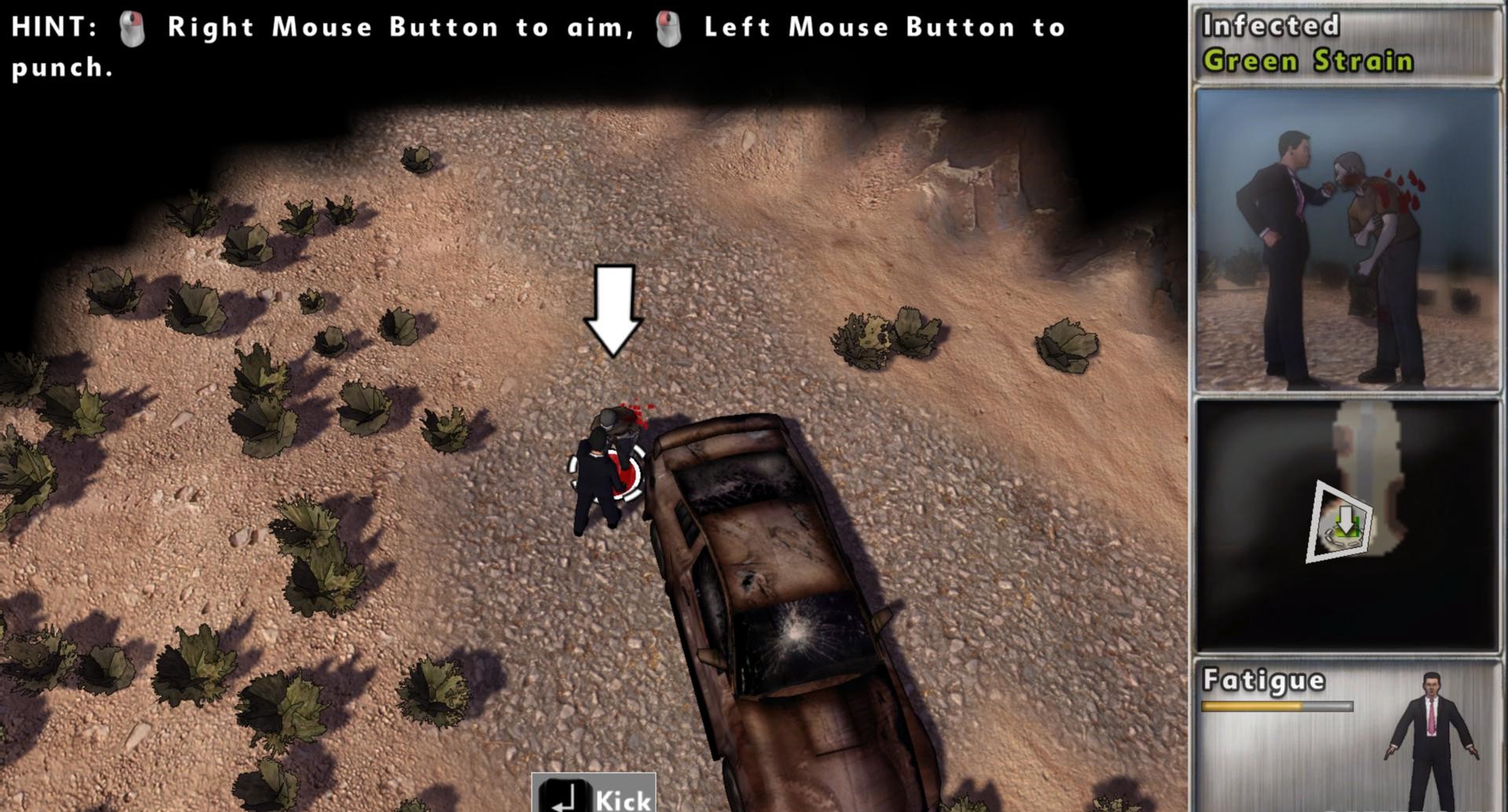 每当玩家杀死丧尸的时候可以在他们身上获得物品,当玩家遇到房屋同样可以进入获得物品补充。玩家界面的右下方会有玩家的损失血量和疲劳度。在游戏过程中,玩家可以通过鼠标的移动来控制视线在三维空间内的转动。