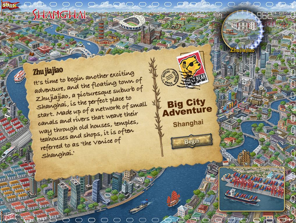 上海是东方和西方的完美组合!既具有传统性和东方的影响,又融合了现代西方的特点。这次城市大冒险就来到了这个独具魅力的城市。在《大城市冒险10:上海(Big City Adventure: Shanghai)》这款游戏中,玩家将发现一系列的隐藏对象。成千上万的物品隐藏在众多建筑之中,加上各种有趣的小游戏,这次旅行一定会非常奇妙。