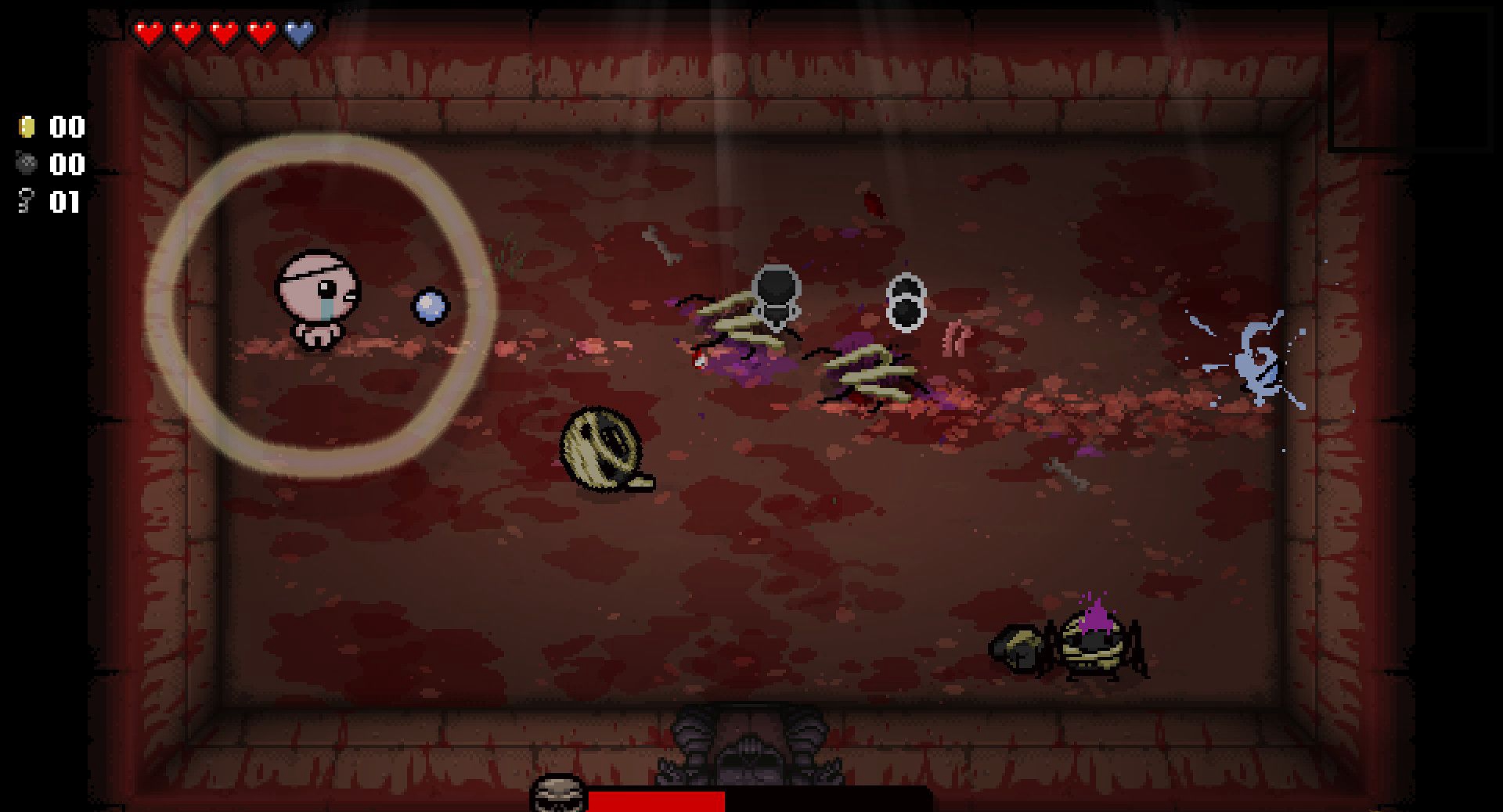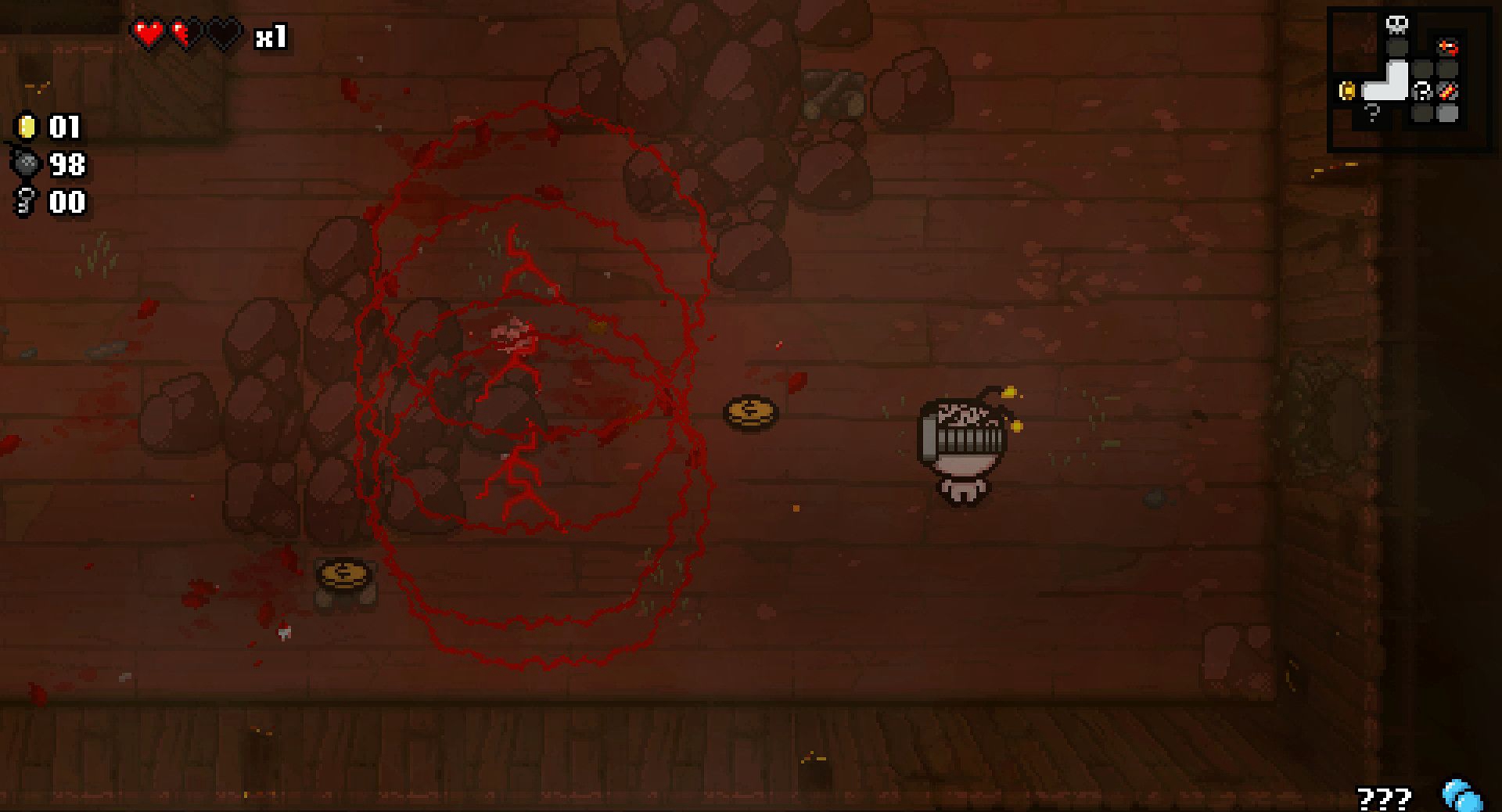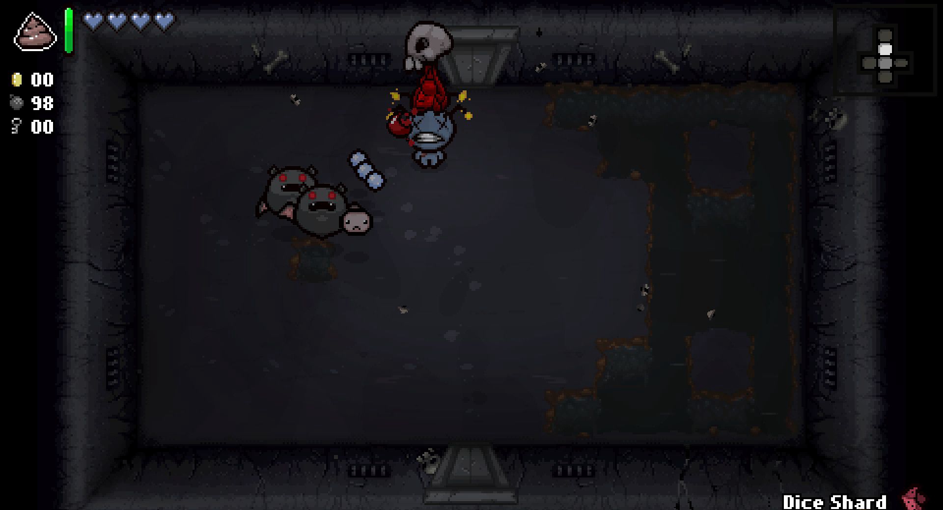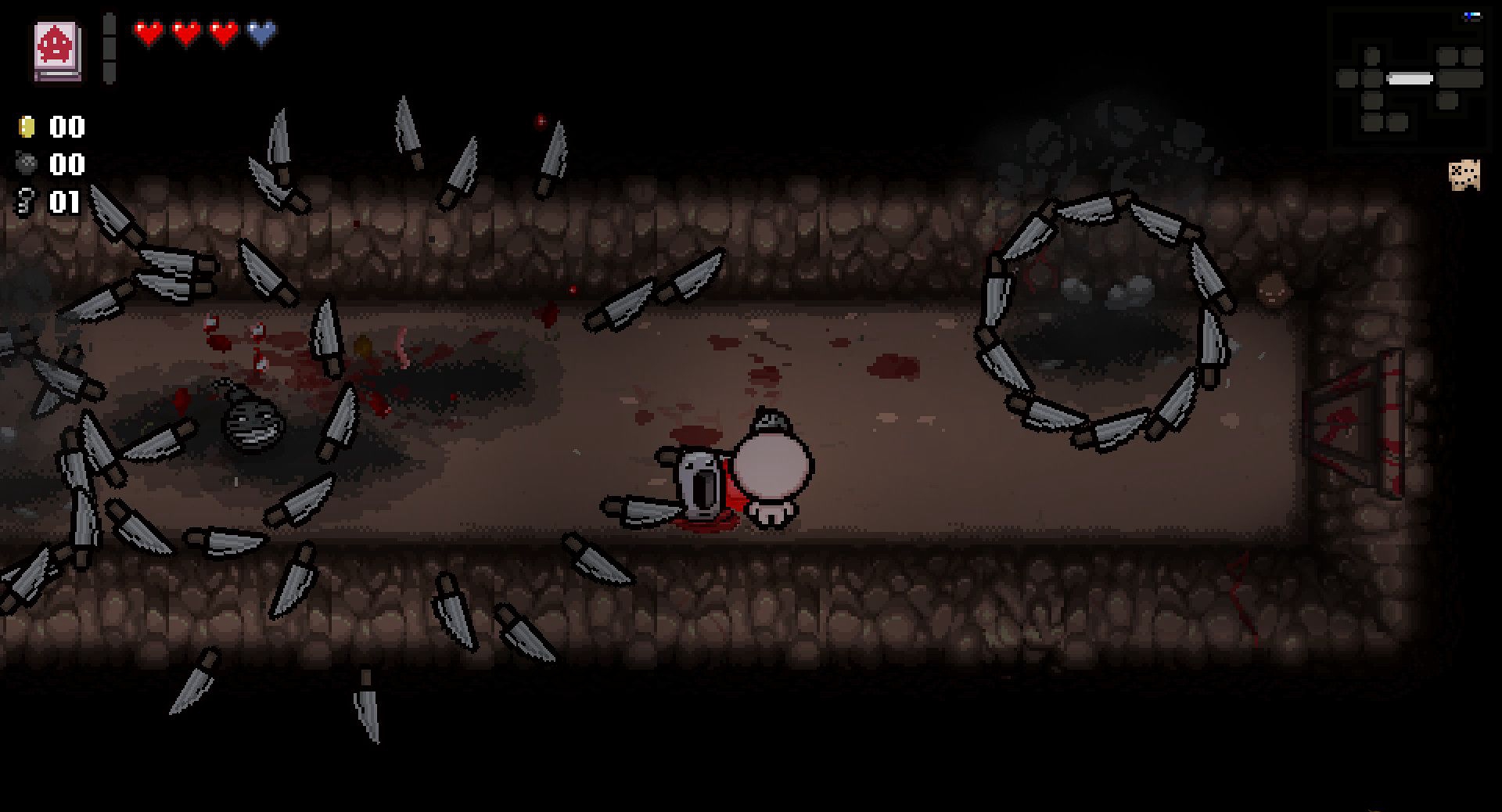 将角色变成一个天使,使之能够飞跃障碍物,只在当前房间生效。同时可以立即杀死Mom或者Mom’s Heart(不会计入momkills的次数当中),但如果对Satan,Isaac使用则立即杀死角色自己(貌似可用圣饼来抵消,未确定)
