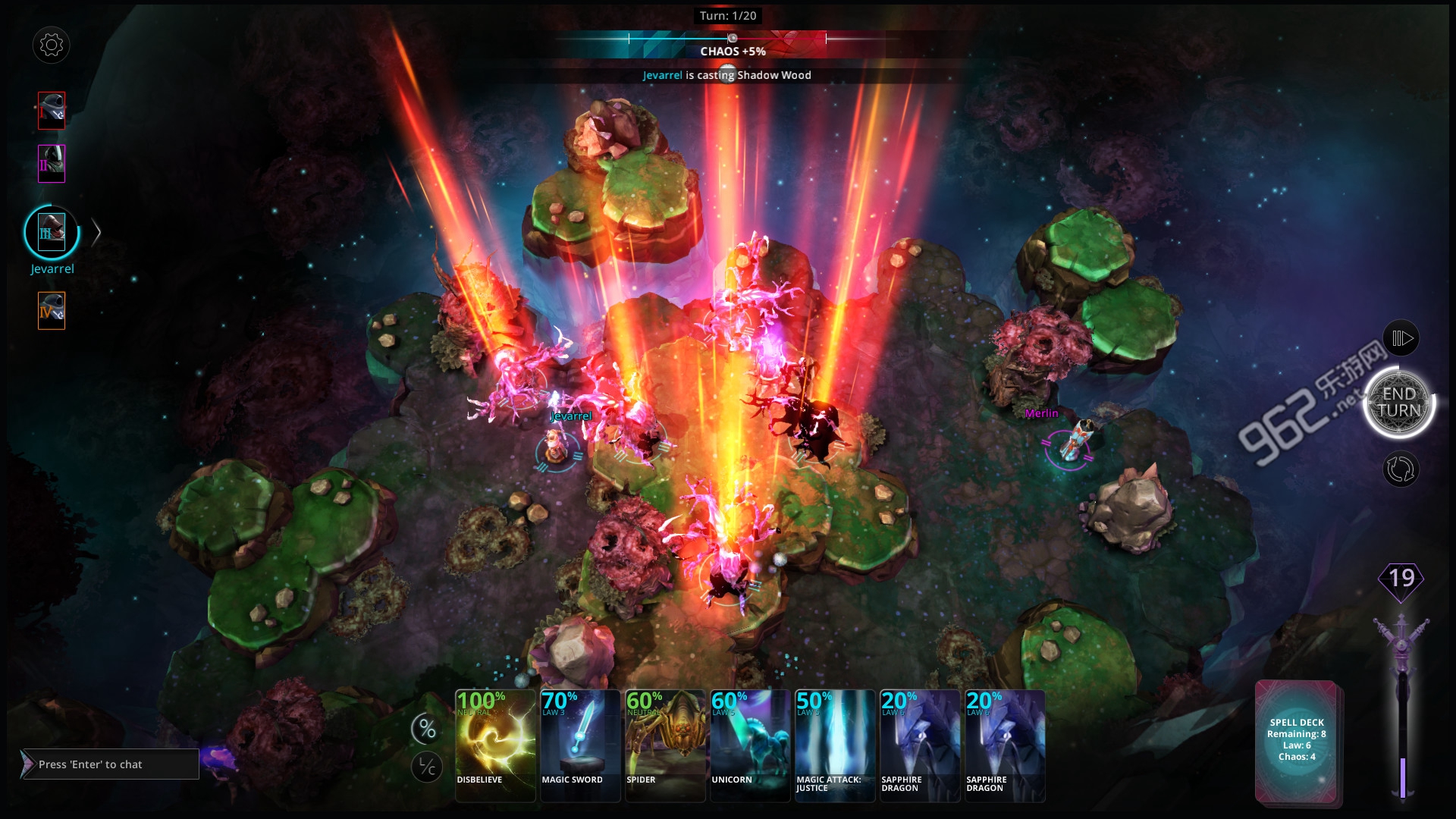 《混沌重生(Chaos Reborn)》是由Snapshot Games Inc.制作发行的一款魔幻题材的回合制RPG游戏。玩家在游戏中能够探索混沌圣域,与巫师之王对抗。游戏支持2-4人的多人对抗,也可以进行2V2合作战役模式。