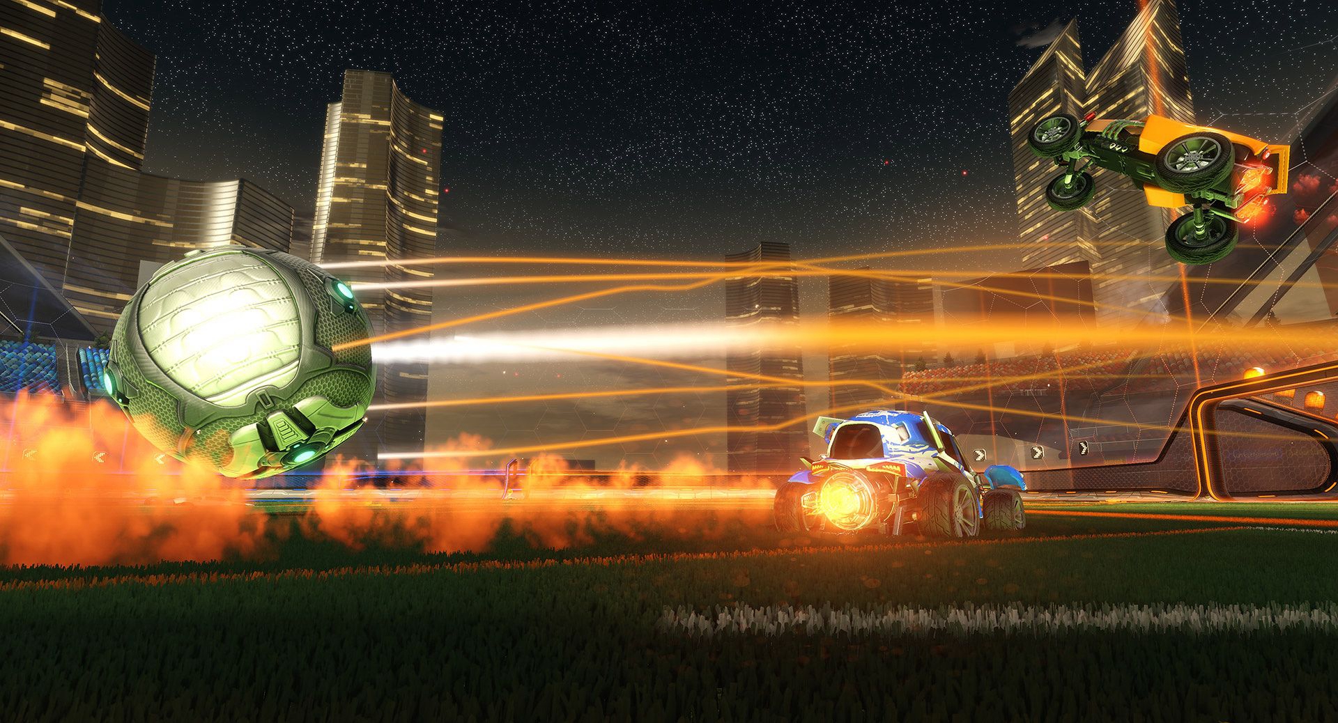 《火箭联盟》是一款由Psyonix制作并发行的一款快节奏动作体育游戏。很好的融合了赛车和足球游戏,精彩的物理效果、疯狂的空中特技、以及激动人心的多人对战。炫酷的画面和物理效果,完整的单人剧情流程、大量玩家自定义选项和内容丰富的多人游戏,打造新世代动作体育游戏体验。