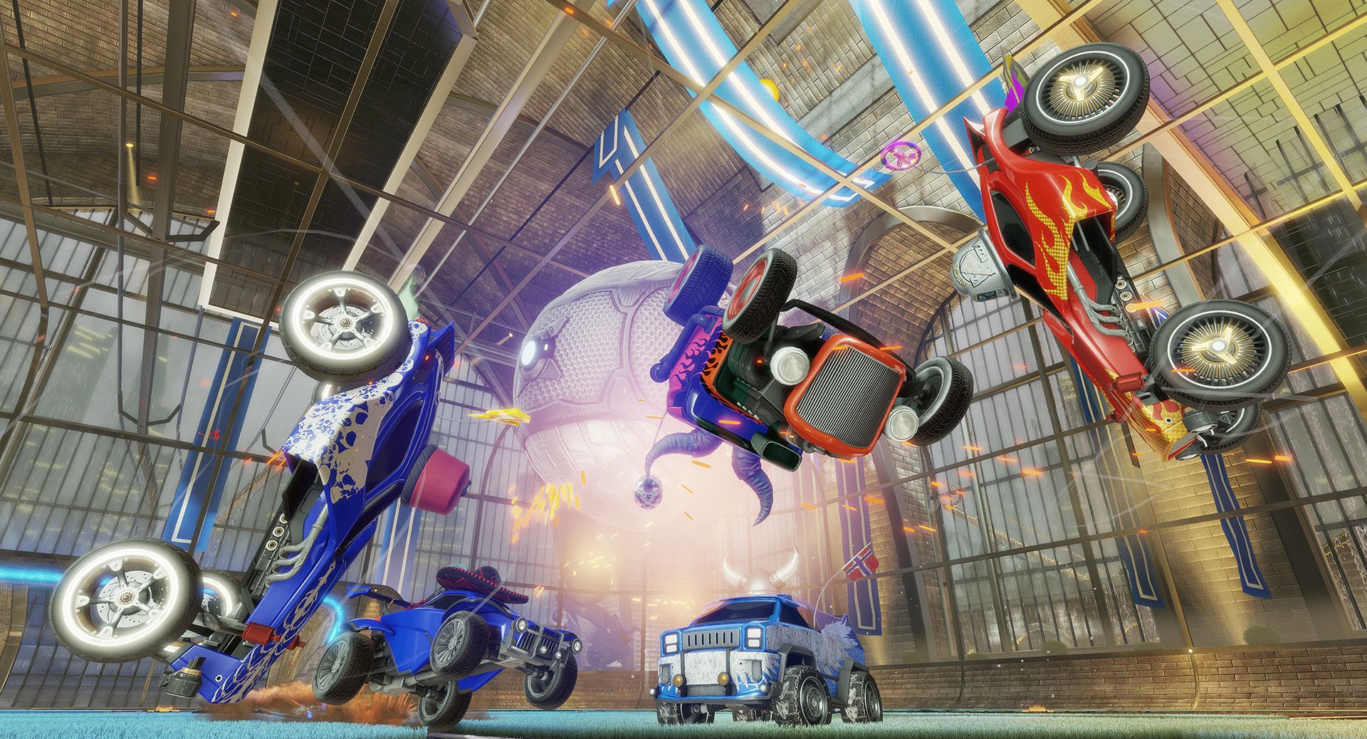 《火箭联盟(Rocket League)》是由Psyonix制作发行的一款非常有创意的赛车游戏。与以往的赛车游戏不同的是,本作不是比谁的赛车跑得更快,而是用赛车在球场内踢足球。