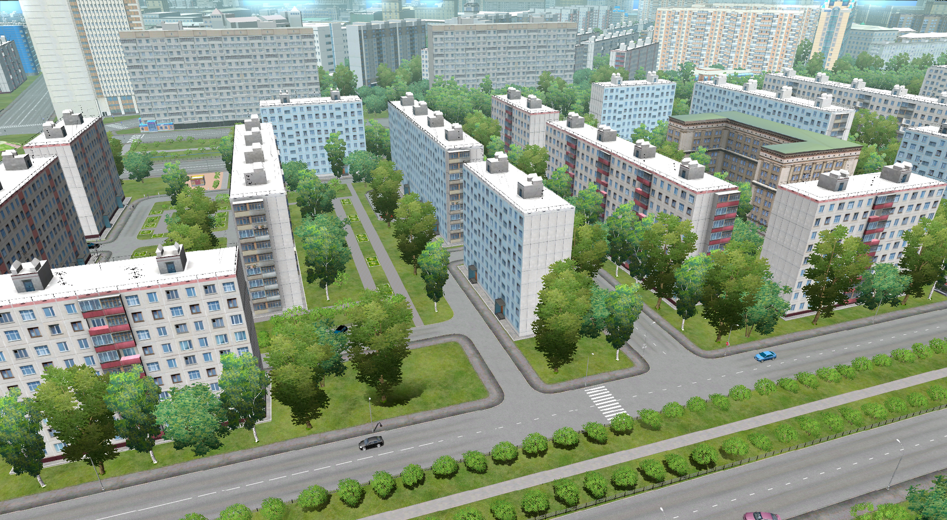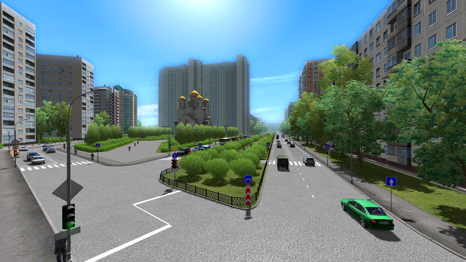 南部街区:这个地方有宽阔的街道以及电车,当然也有喜欢闯红灯的行人,以及多个停放的汽车。