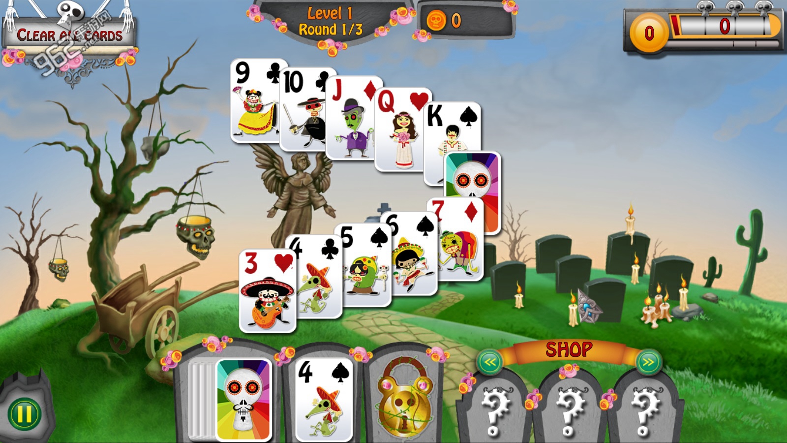 《遗忘的传说:亡灵节(Forgotten Tales: Day of the Dead)》是一款非常休闲的纸牌消除游戏。玩法比较简单,屏幕正下方存在一张翻起的纸牌,玩家只需要点击上方纸牌,通过找升序或降序的方式叠摞到下方纸牌上即可。如果上方不错在可供叠摞的纸牌,那么玩家可以点击正下方纸牌左侧的辅助纸牌,此时会出现任意新卡牌叠摞到正下方纸牌上,玩家再次从上方纸牌中寻找适合的纸牌进行叠摞操作,消除游戏中的所有纸牌即可过关。喜欢纸牌消除游戏的玩家不妨搜试试。