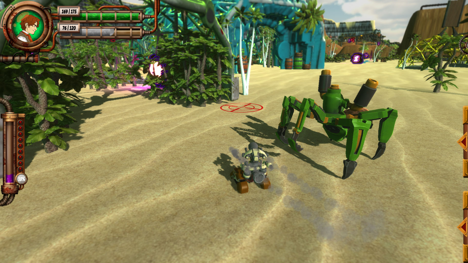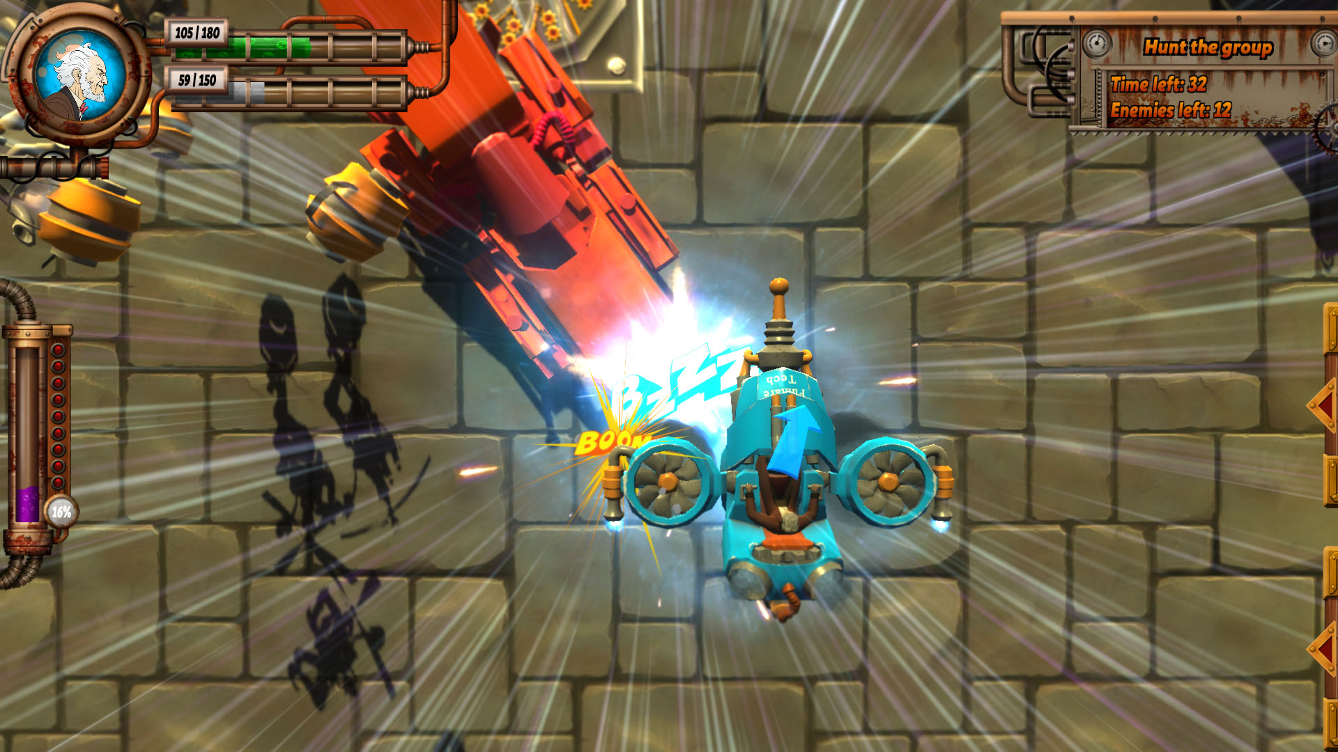 一些科学家预测平行世界的存在,但我们并不知道平行世界中的生物们是否是善意的,如果有一天,它们入侵了自己的世界,你会怎样做的,《风镜:瓦波利亚世界(Goggles - World of Vaporia)》正是以这样的假设为背景制作而成的射击游戏。故事背景设定在一个名为瓦波利亚的蒸汽朋克世界,自动化已经遍布这个世界的每一个角落,即使是街道上负责清洁的机器同样随处可见,发明家Jerne发现了平行世界的存在,并且他还通过自己制作的风景看到了平行世界的生物,但令他没想到的是,第二天发生了意外状况,城市中出现了许多的空间裂缝,未知的生物开始入侵自己的世界了,现在大发明家必须和自己的伙伴们对抗这些未知的家伙,拯救自己的城市。
