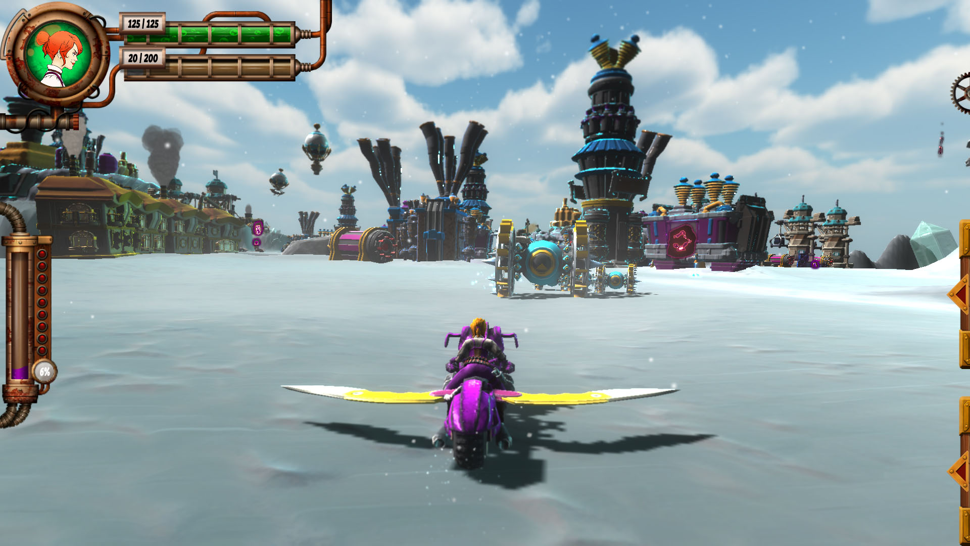 《风镜:瓦波利亚世界》是由Bit2Good Ug制作发行的一款多人载具射击游戏,该作品支持最多4人同时进行游戏。玩家可以从4个可操作角色中选择一个,分别是Quentin、Frank、Tesla和Jerne。他们每个人都有独特的武器、载具、和特殊技能。